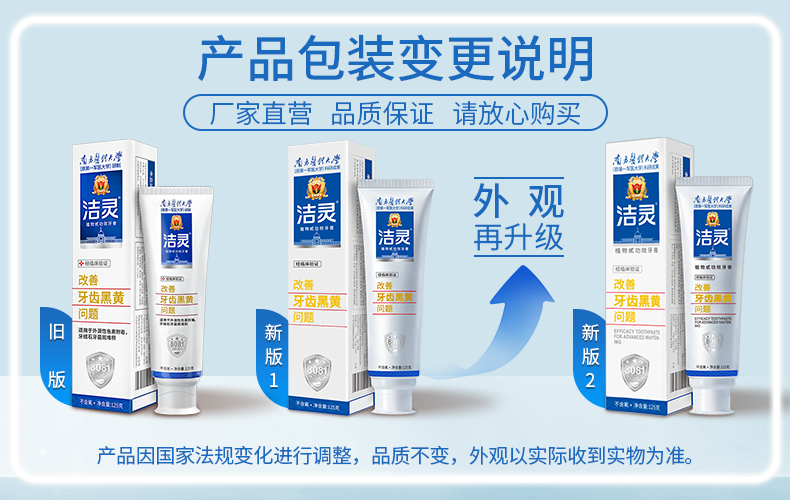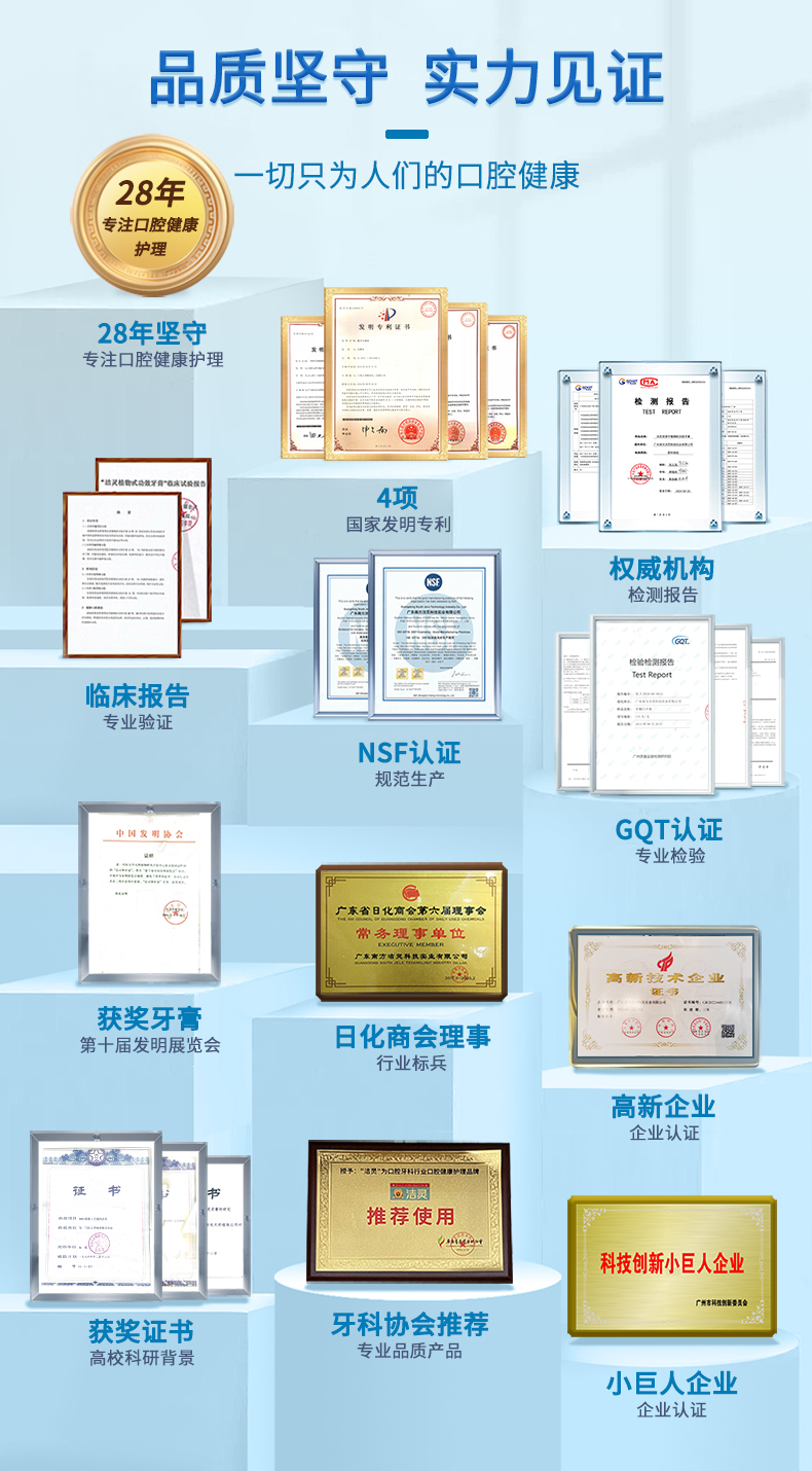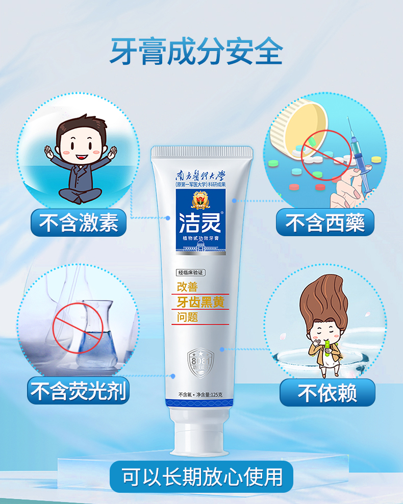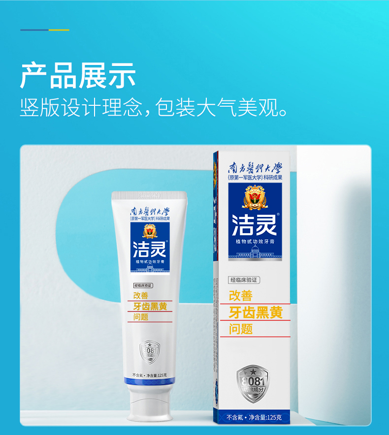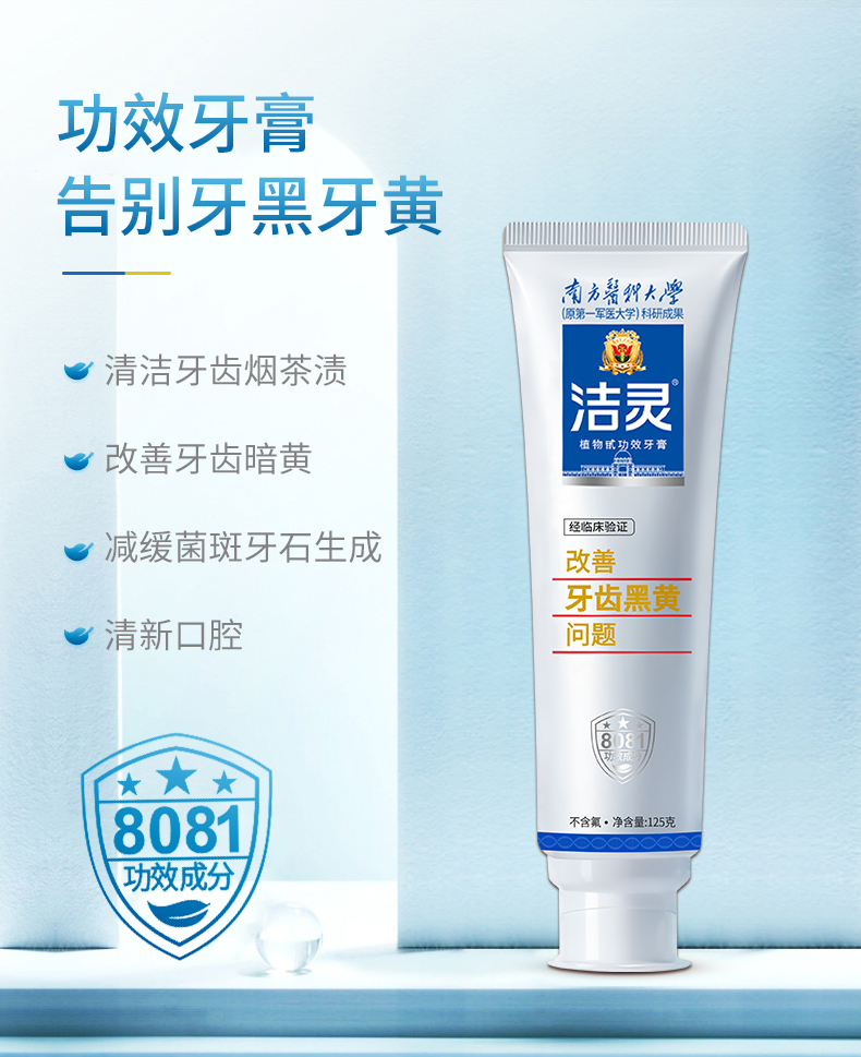 - 洁灵牙膏,由南方医科大学研制,牙膏的核心8081功效成分效果出众,在第十届全国发明展览会成为获奖牙膏。