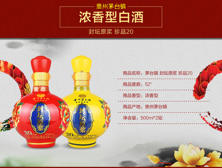 【推荐】【清仓】贵州茅台镇封坛原浆20珍品 52度 浓香型白酒 500ml*6坛(新老包装随机发货)