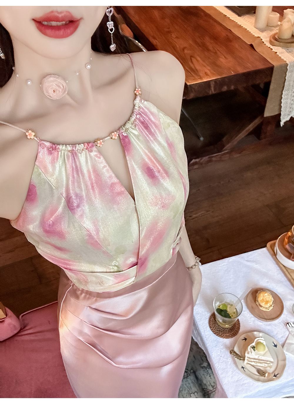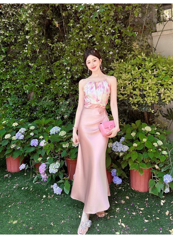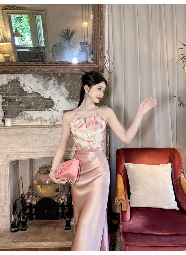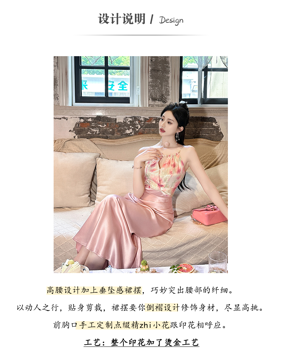 BeQueenStory【亭亭玉荷】轻奢性感含醋酸冰丝凉感修身连衣裙夏季新