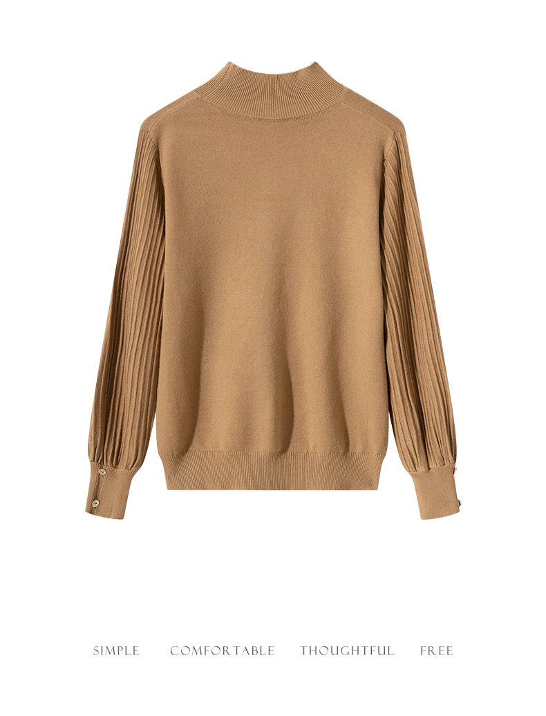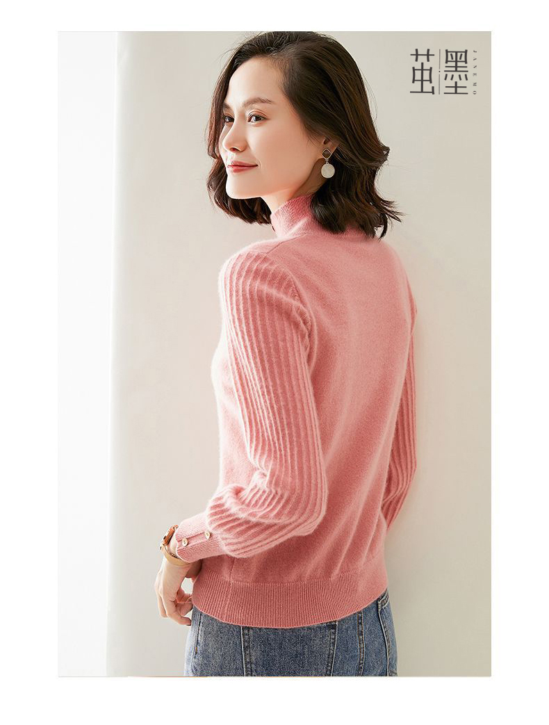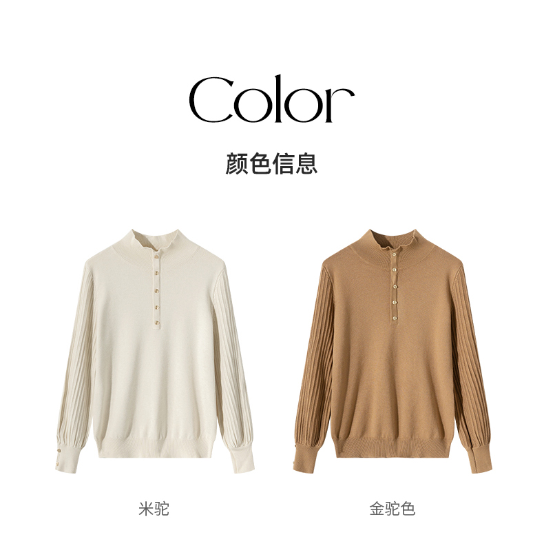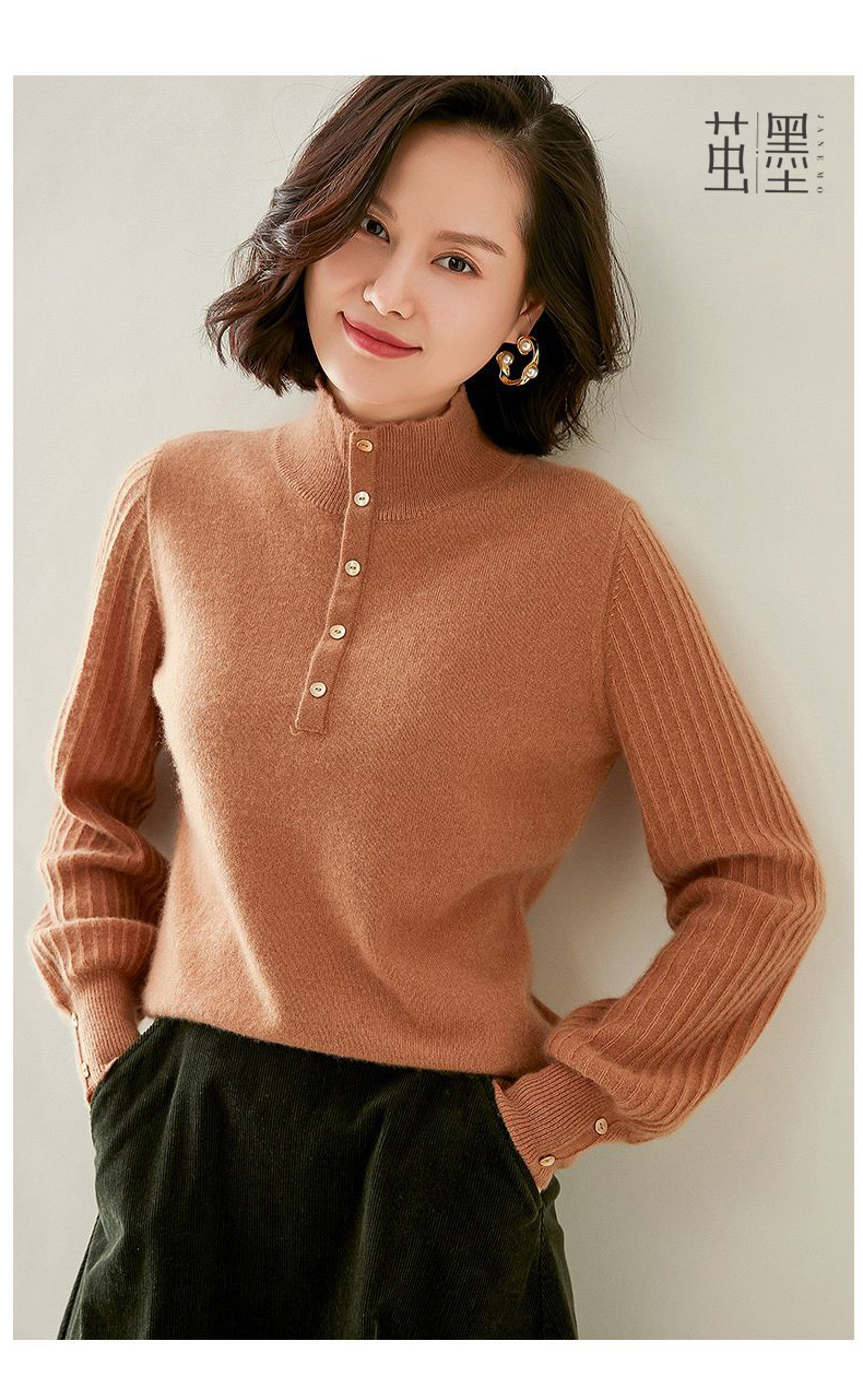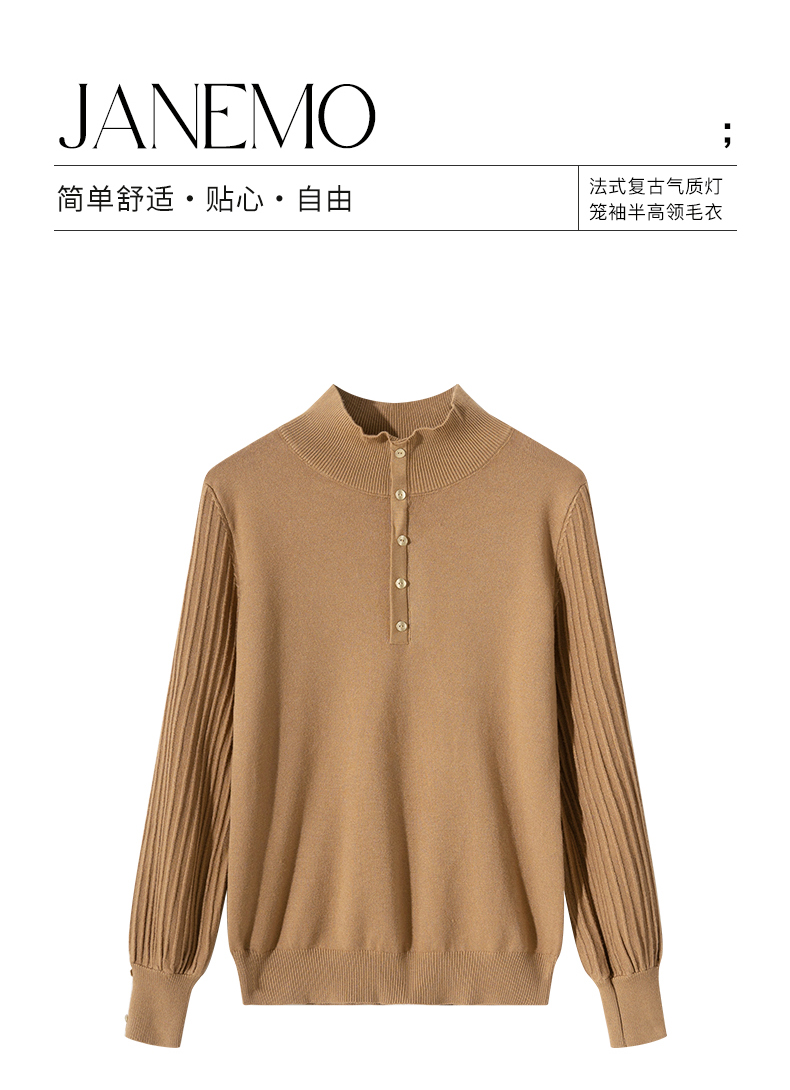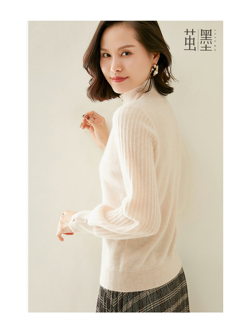 茧墨 法式复古气质灯笼袖半高领毛衣
