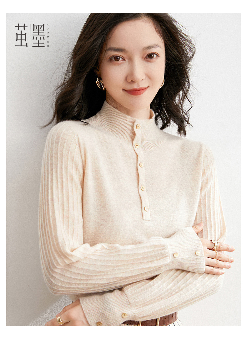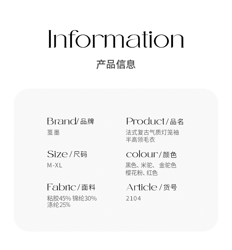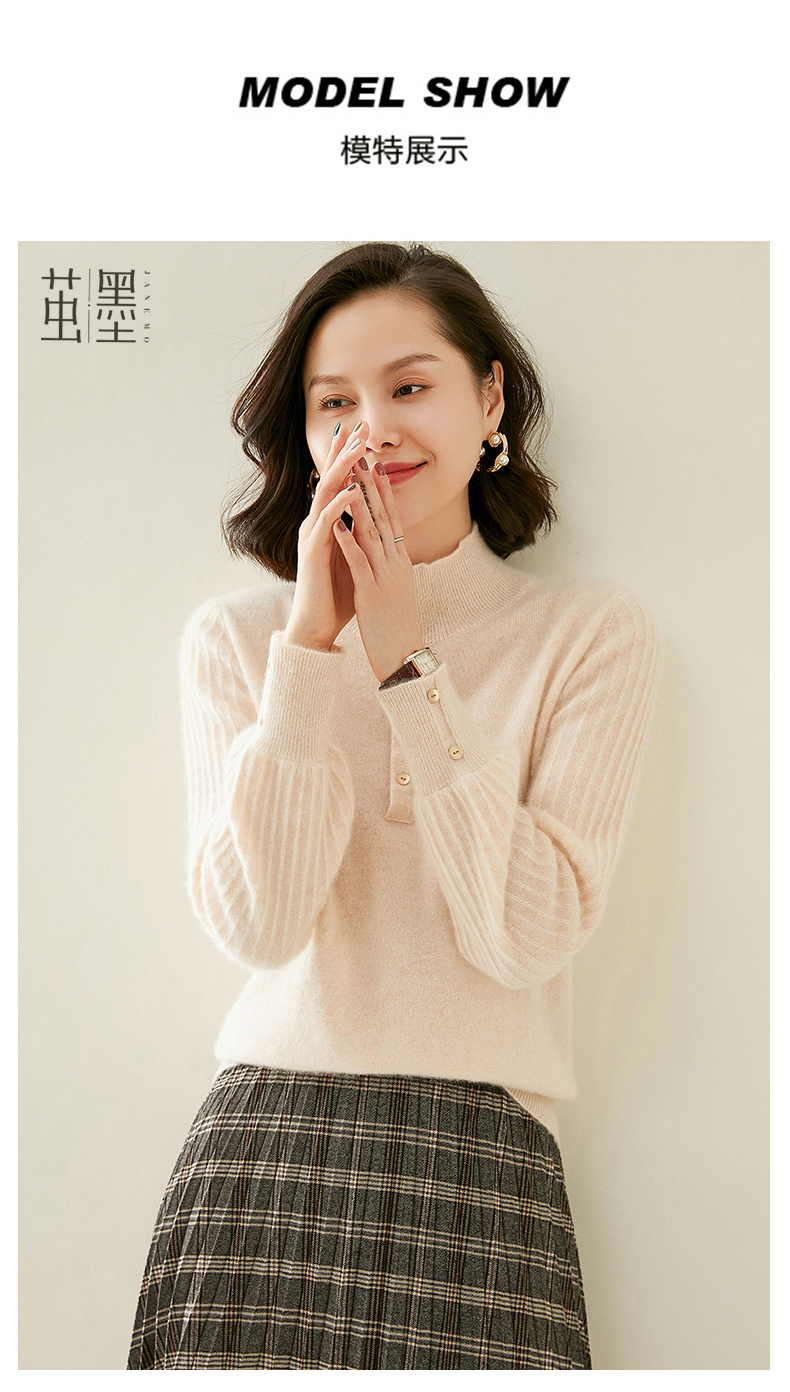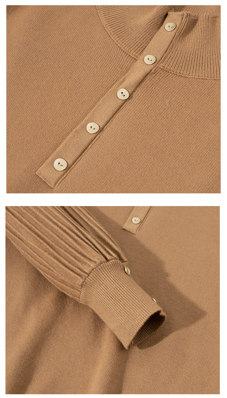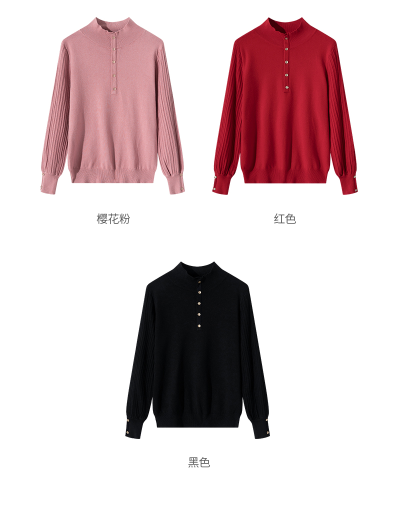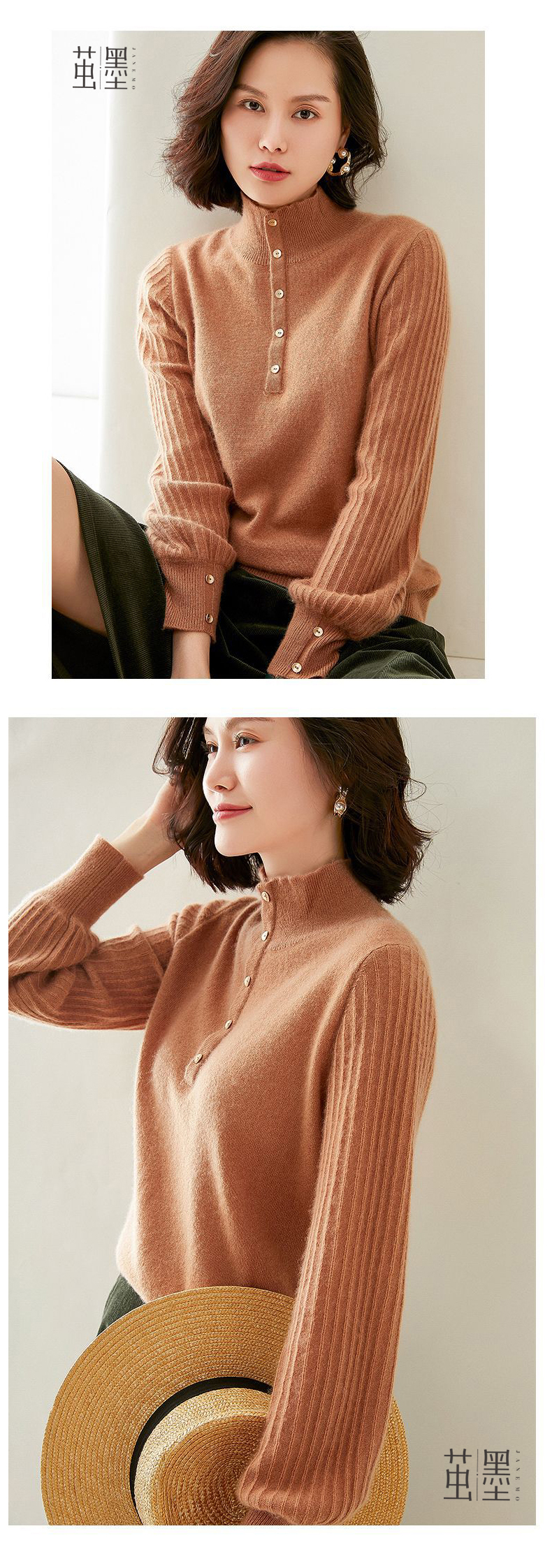茧墨 法式复古气质灯笼袖半高领毛衣