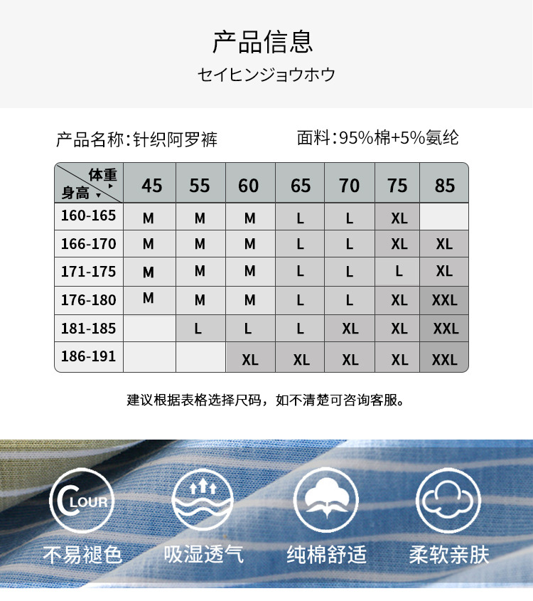 【男士阿罗裤】男士阿罗裤内裤全棉男条纹居家睡裤运动三分平角短裤