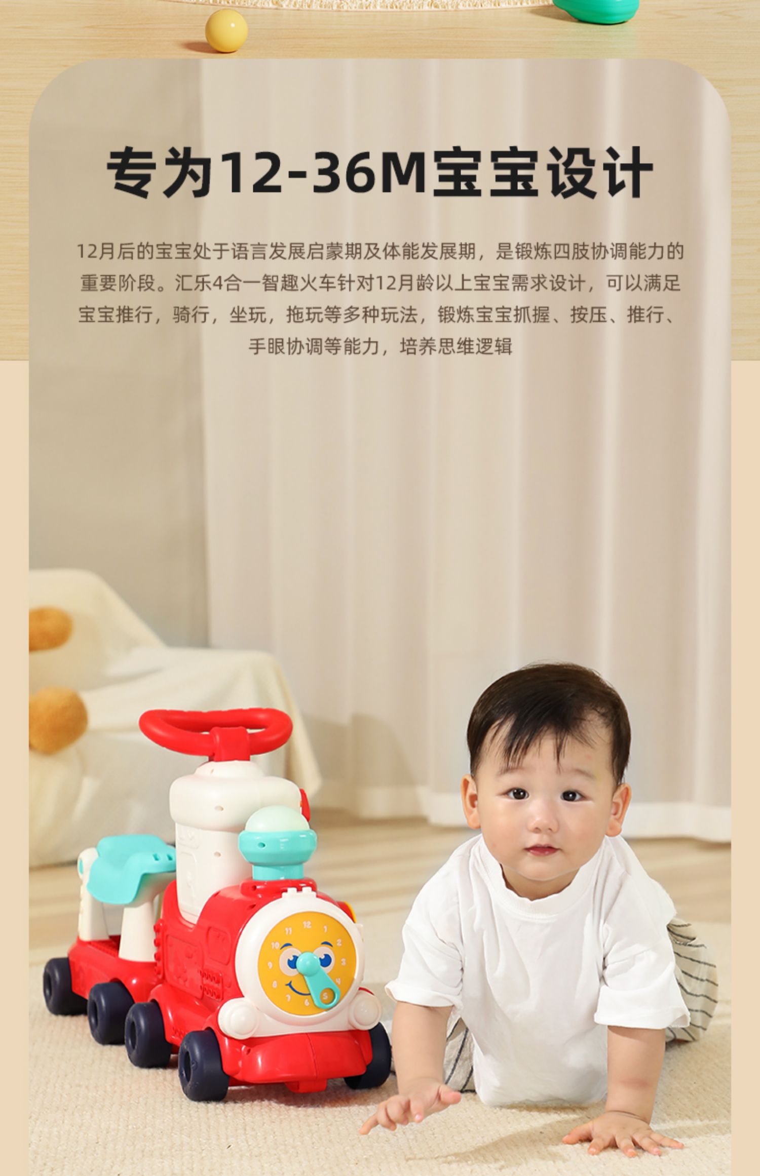 【汇乐】四合一智趣小火车可坐人学步车宝宝手推拉车骑行玩具车/C8990