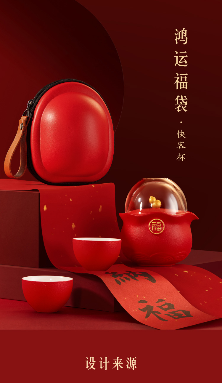 【故宫茶具】鸿运福袋快客杯便携旅行茶具套装文创新年本命年礼物