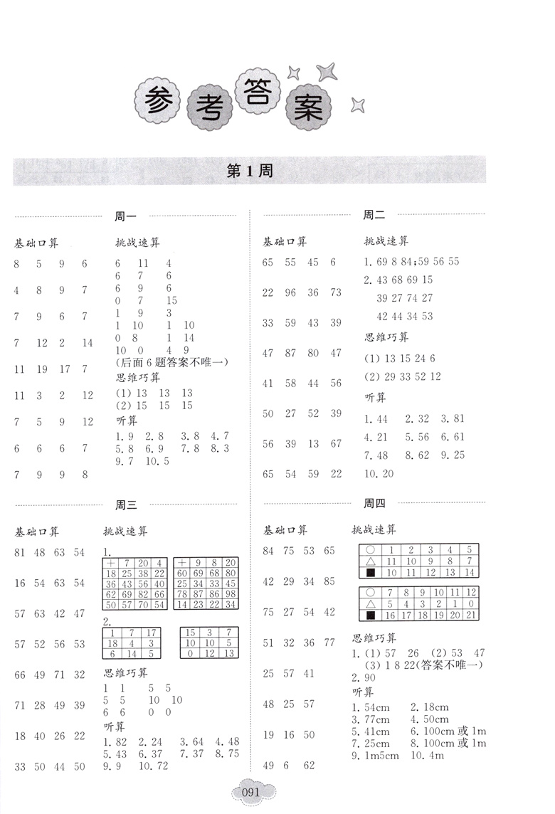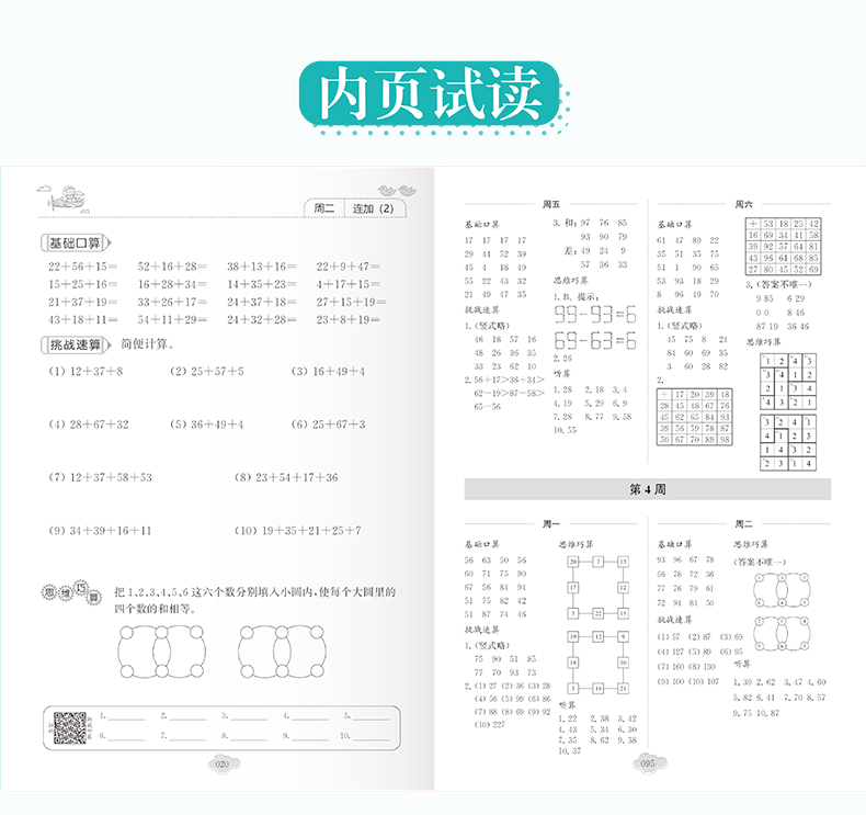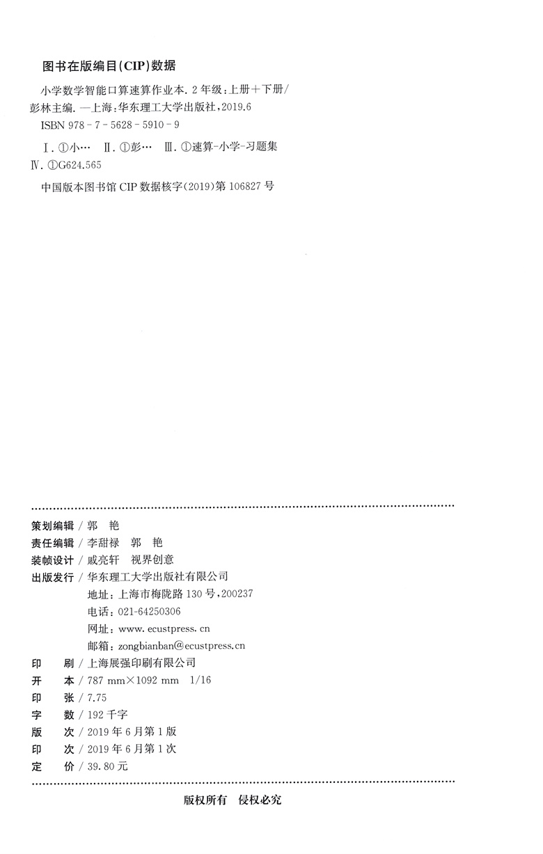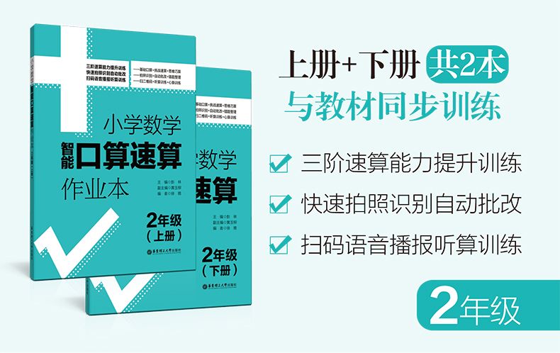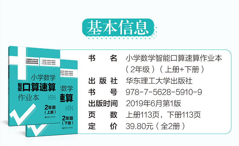 小学数学智能口算速算作业本 2年级/二年级上册+下册 小学口算练习册口算本 小学数学口算速算心算听算 华东理工大学出版社