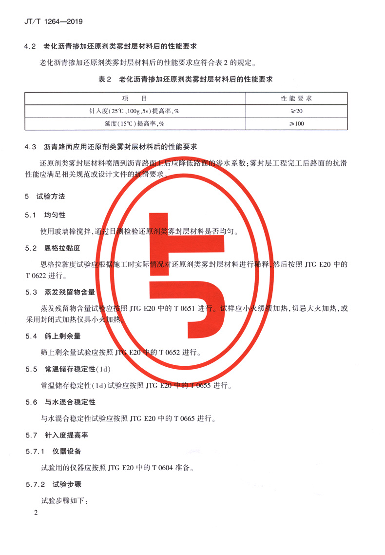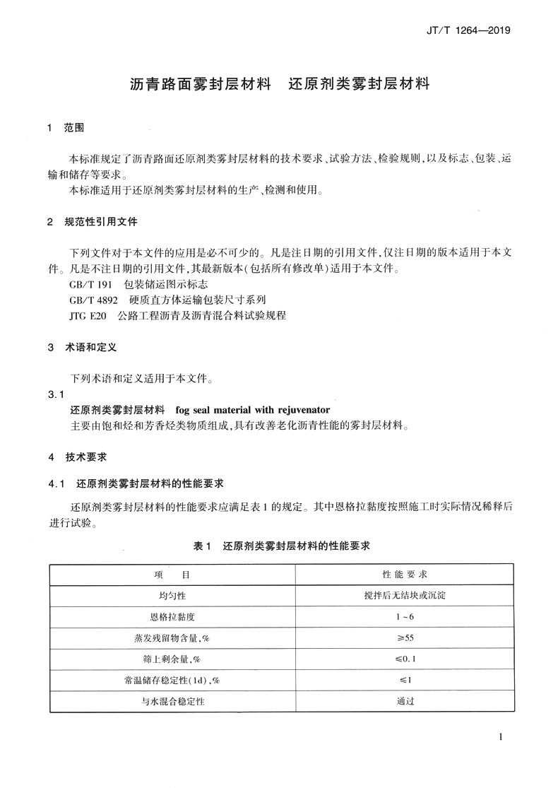 | 沥青路面雾封层材料 还原剂类雾封层材料(JT/T 1264—2019) | ||