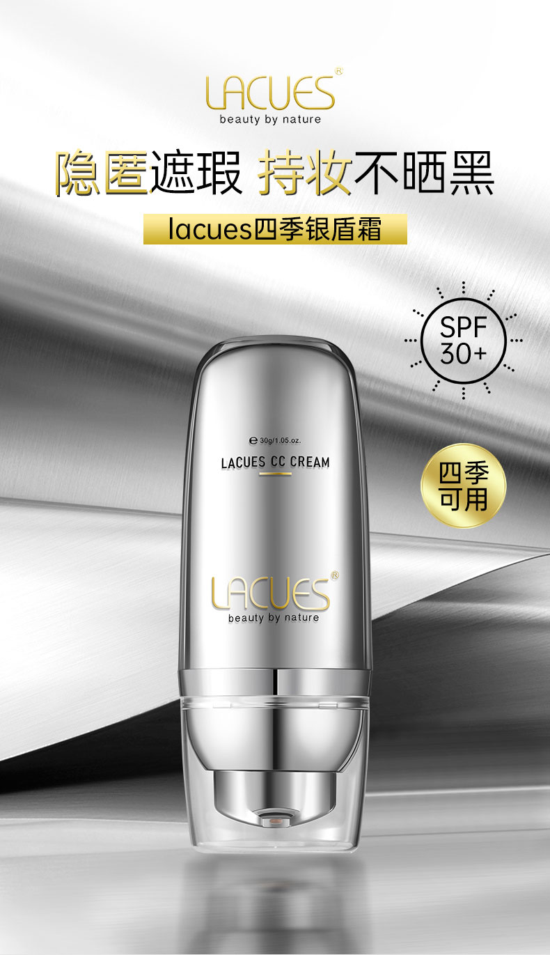 【CC遮瑕霜】香港直邮【CC霜 LACUES 四季银盾 澳洲原装轻奢品牌】①化妆即养肤 素颜自带高光 ②一体化轻妆出行 妆养合一,一瓶30克