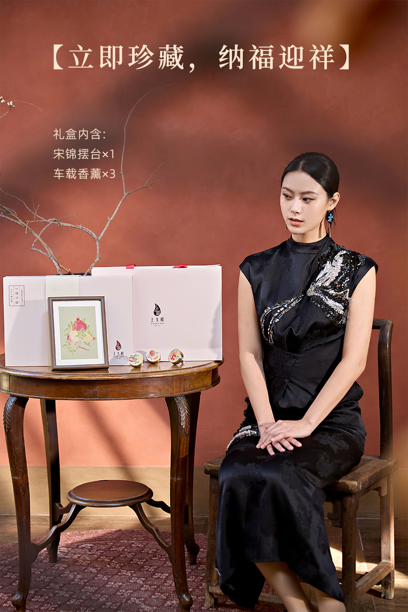 上久楷新中式国风文创礼盒送礼 摆件 宋锦车载香薰 福寿绵瓞