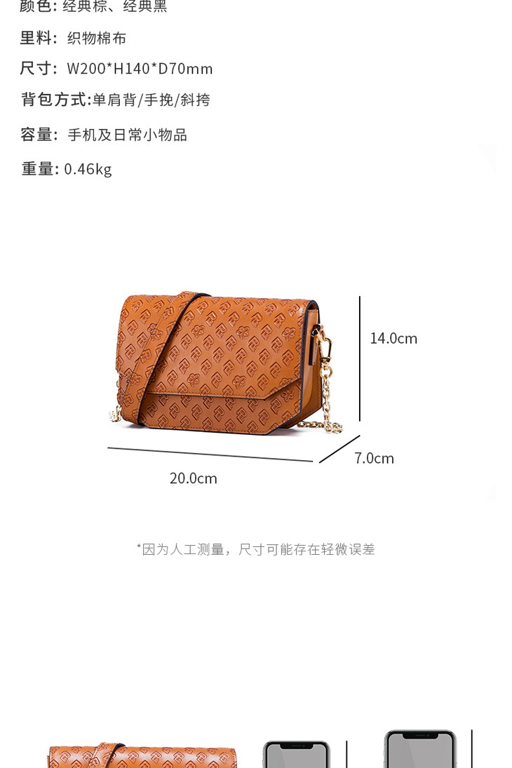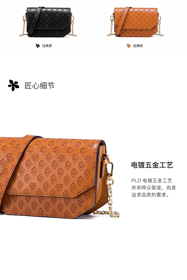 保兰德PLD东方雅奢45度老花压纹头层牛皮小方包链条包通勤必备女包