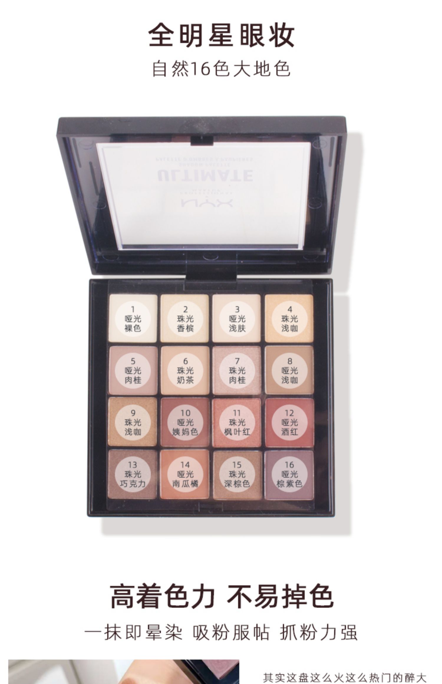 【YZ】NYX16色眼影盘#03号色大地色哑光珠光防水懒人网红ins超火正品