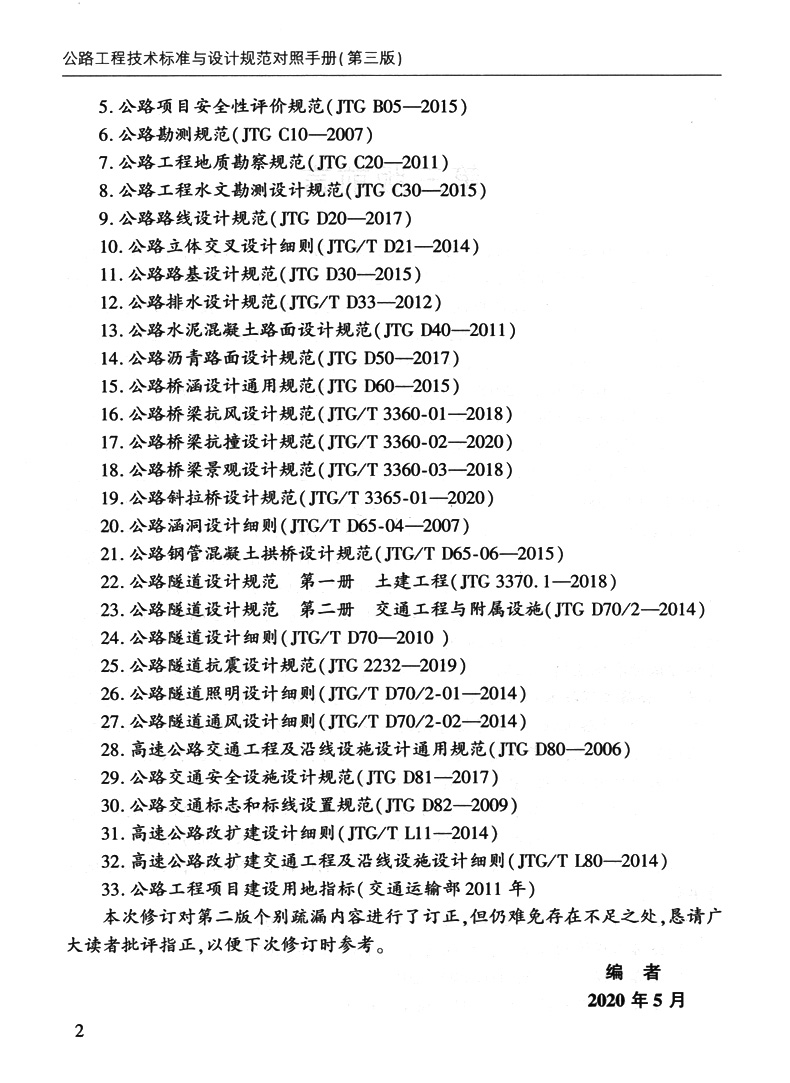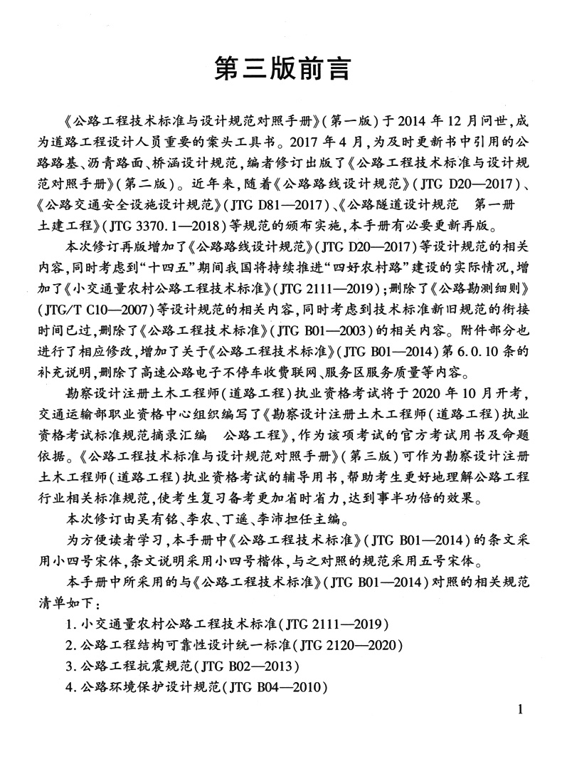 公路工程技术标准与设计规范对照手册(第三版) 2020年注册道路工程师考试用书辅导用书