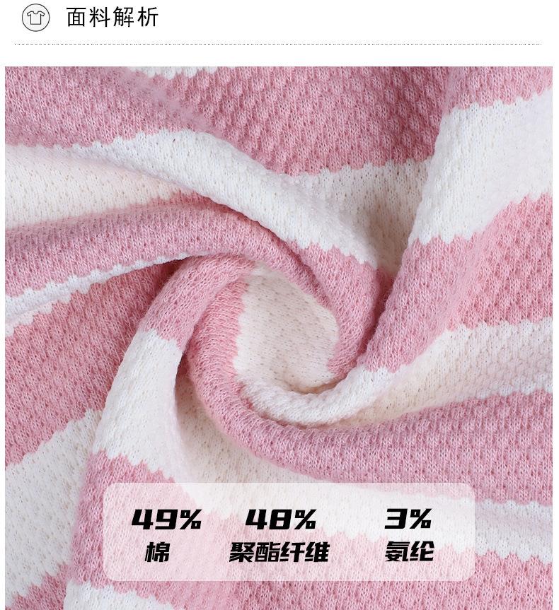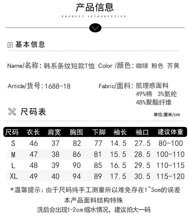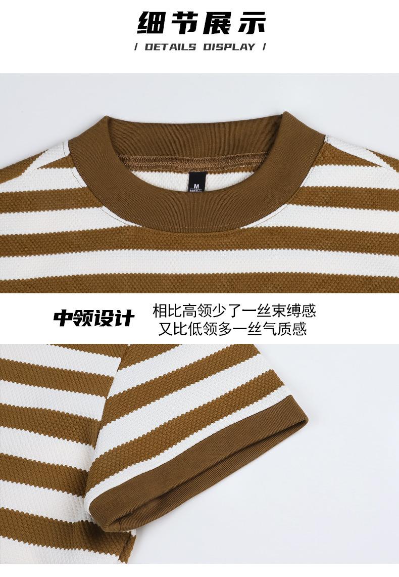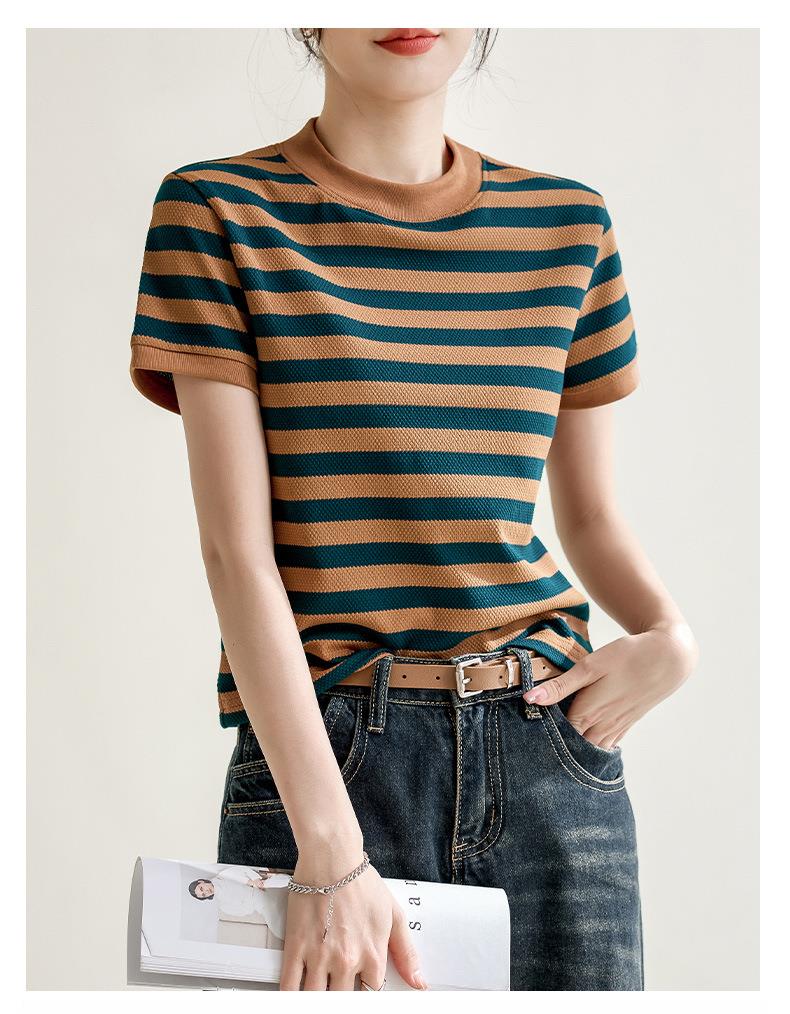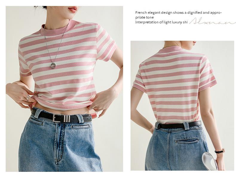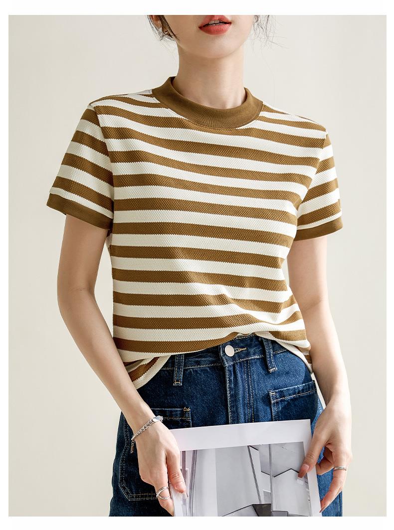 韩系小众圆领肌理感撞色条纹短袖T恤女2024春夏新款设计感上衣