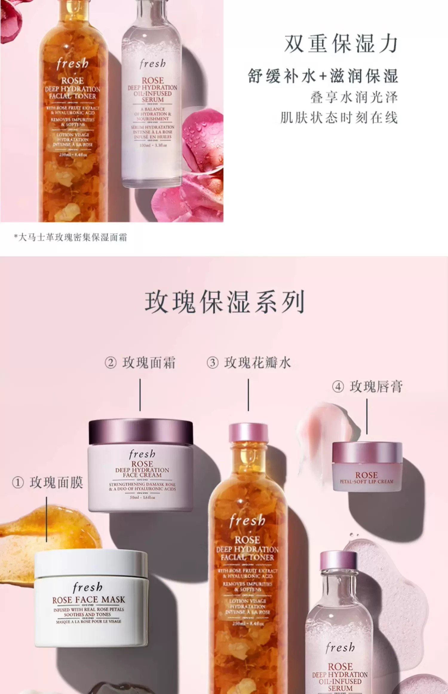 法国 Fresh馥蕾诗 大马士革玫瑰花瓣密集保湿精华爽肤水 250ml/400ml