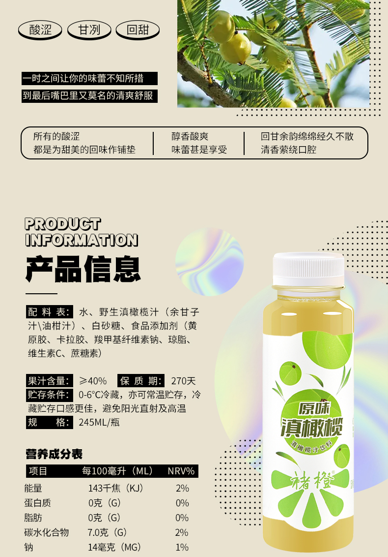 褚橙原味橄榄汁饮料云南油甘果汁原汁饮品245ml*15瓶