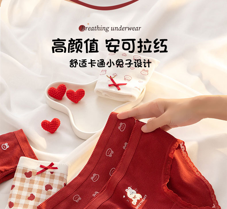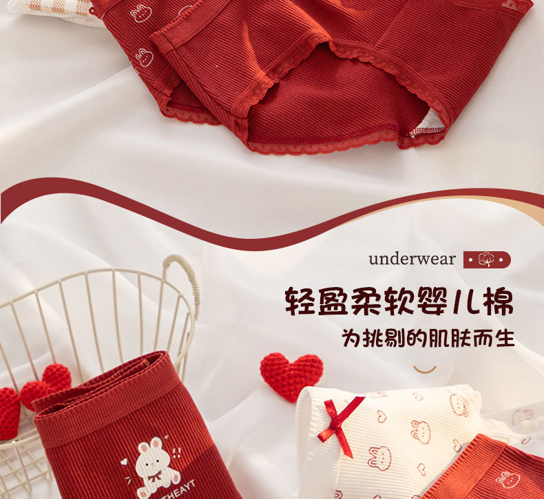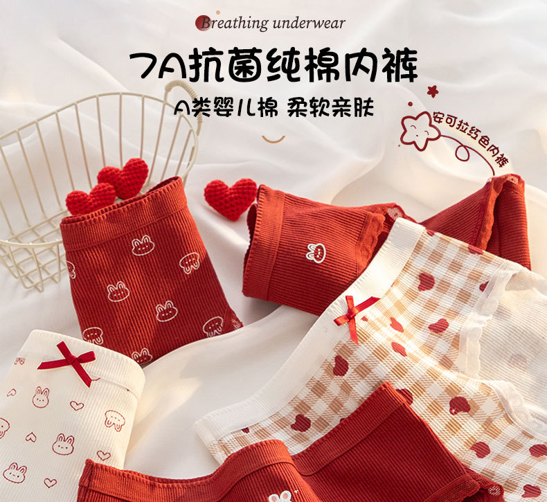 【YW】无忧购【鸿运当‘红’】A类婴儿棉内裤女7A抗菌裆本命年安可拉红色少女内裤纯棉三角内裤Y20(截单后3-5天发货)