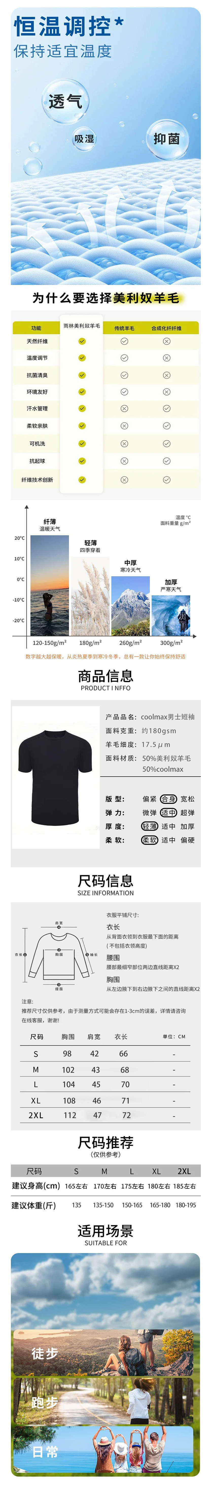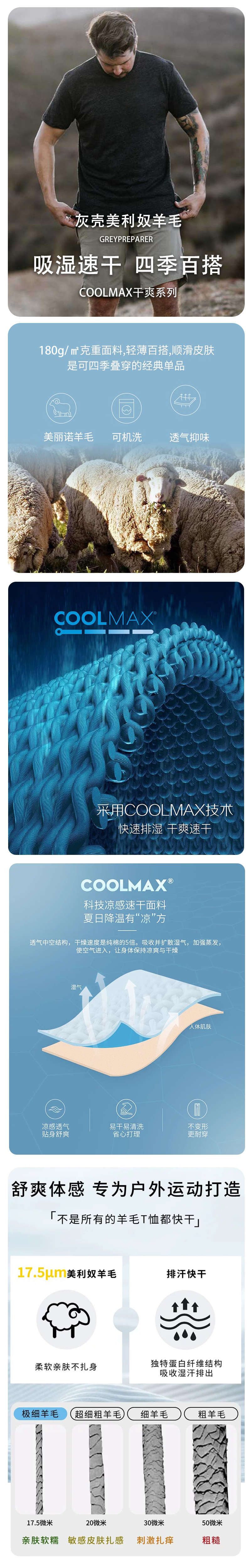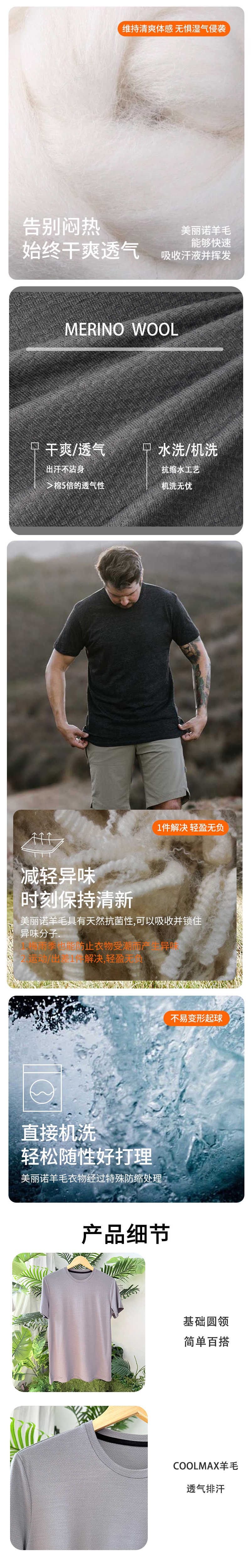 [预售15天]灰壳夏季美利奴羊毛速干衣户外运动男士速干T美丽诺羊毛圆领短袖