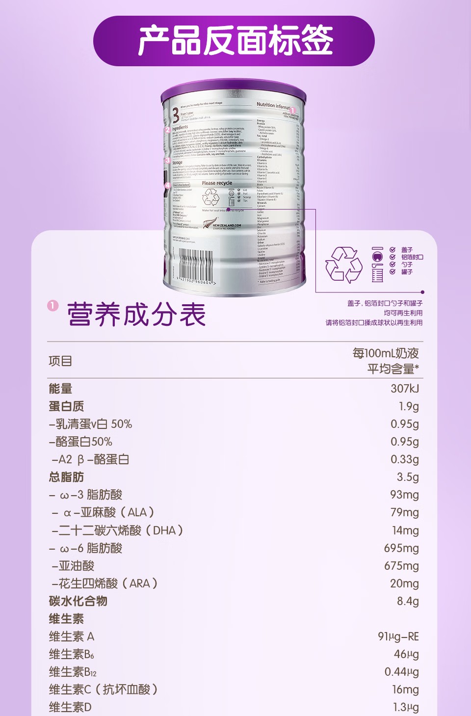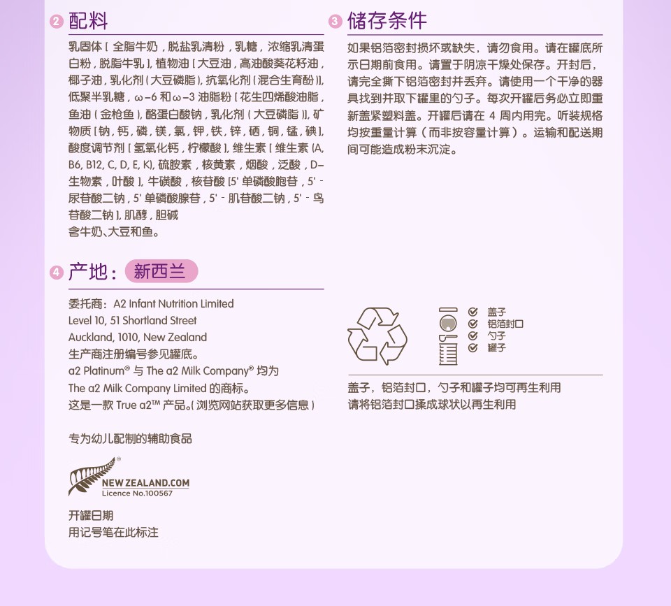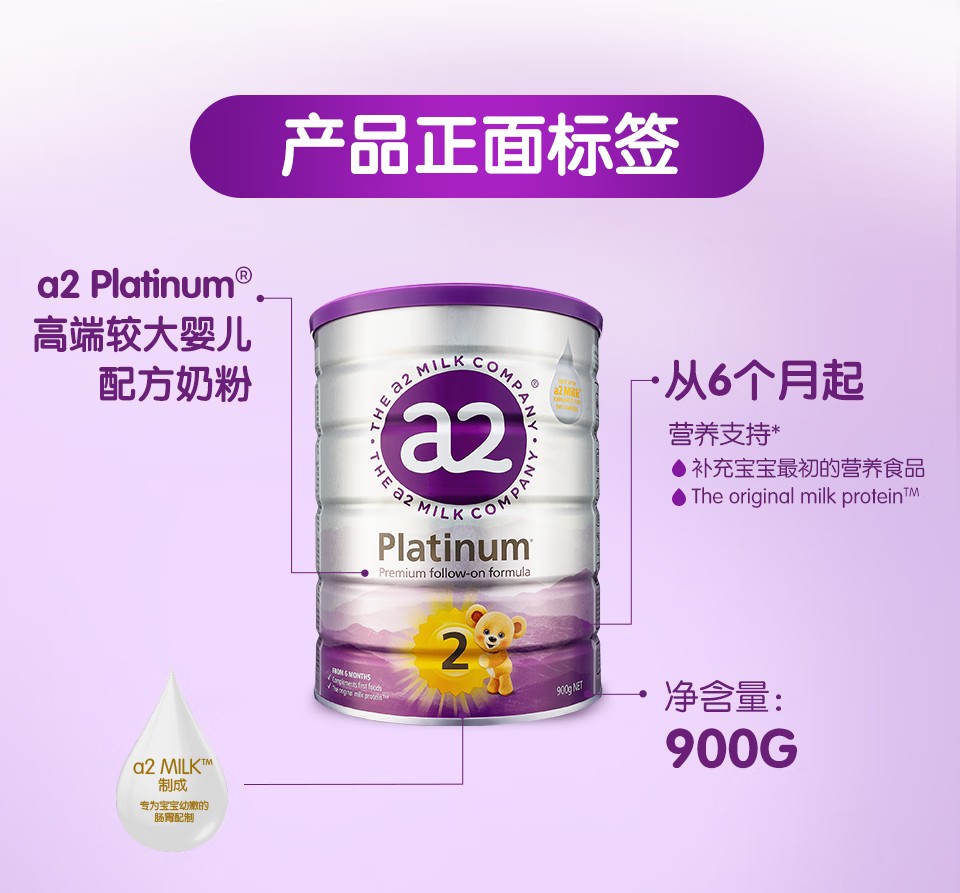 4罐【保税】澳洲A2白金婴儿奶粉2段900g(新老包装随机)