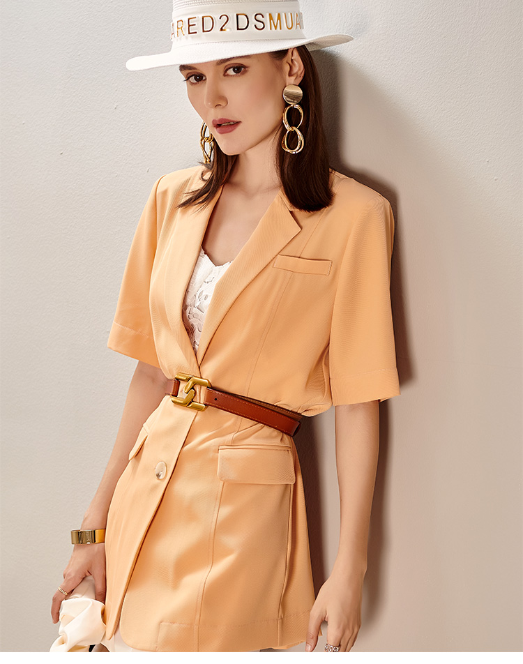 【中长复古风】芳外2025新款夏季薄款短袖宽松慵懒风女式西服0910