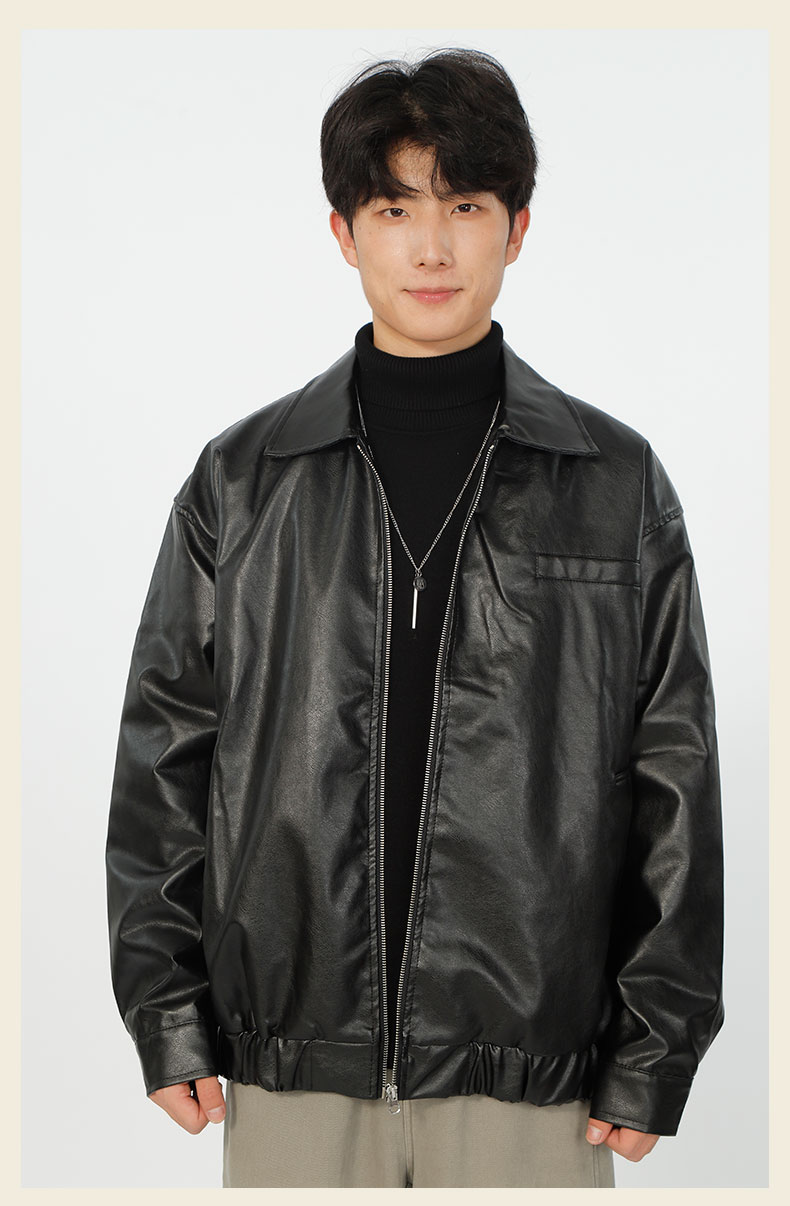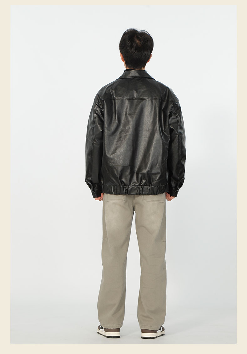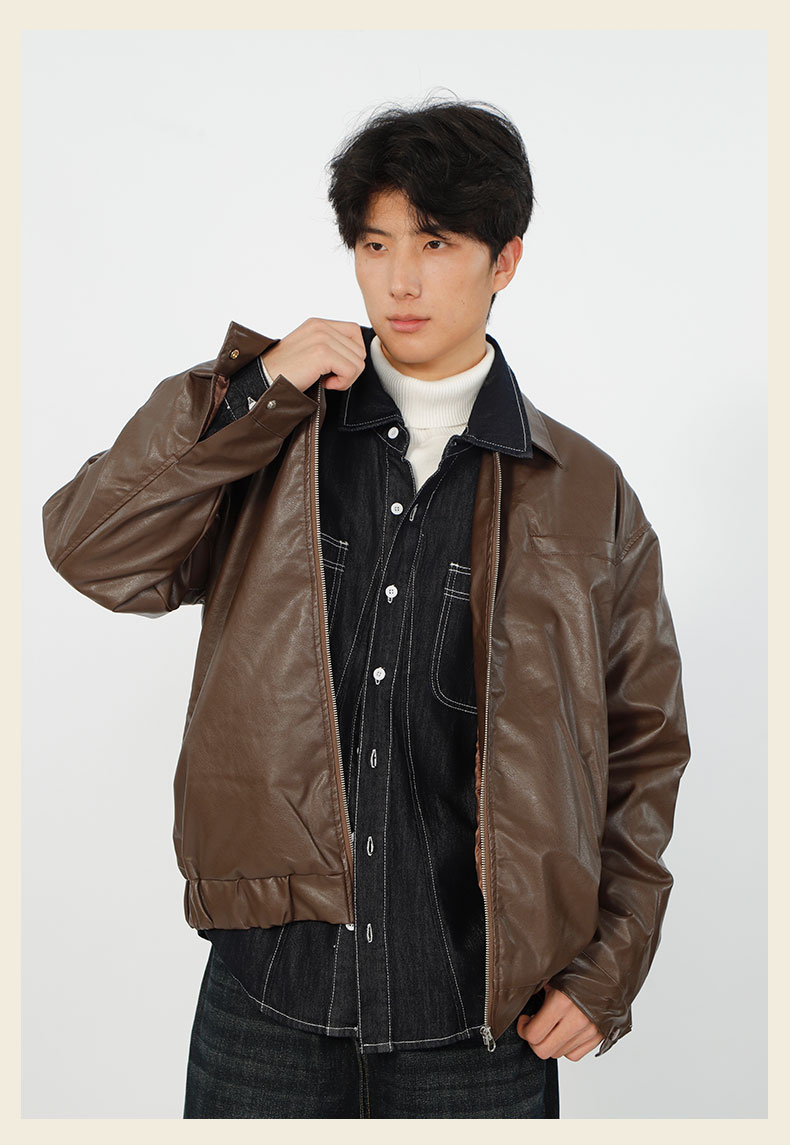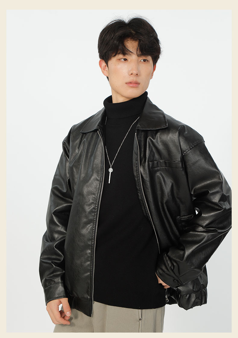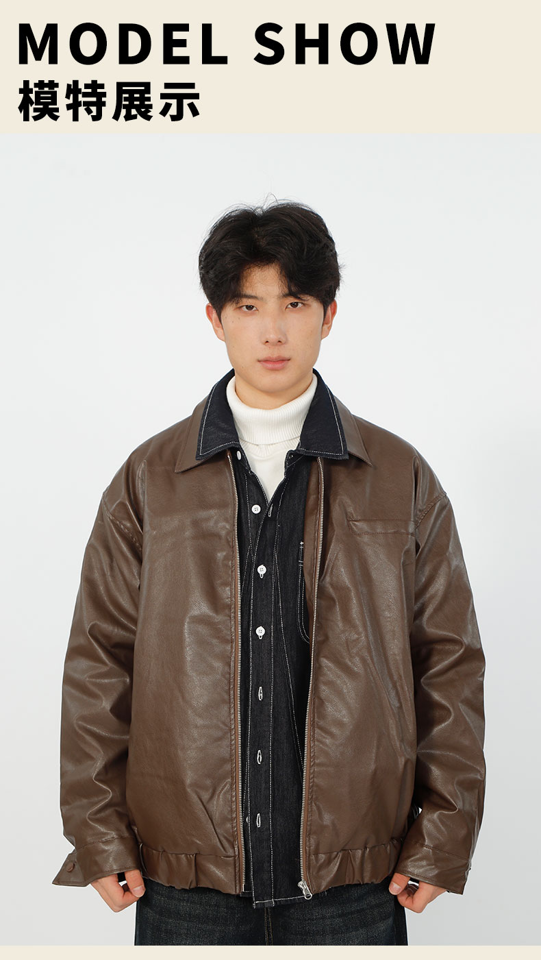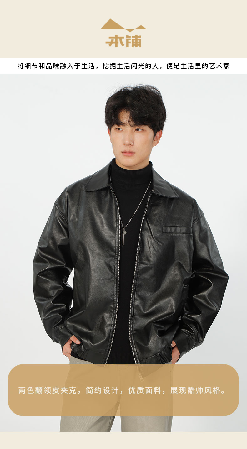 酷帅风简约韩系翻领皮衣-纪念日百货门店同款166296411