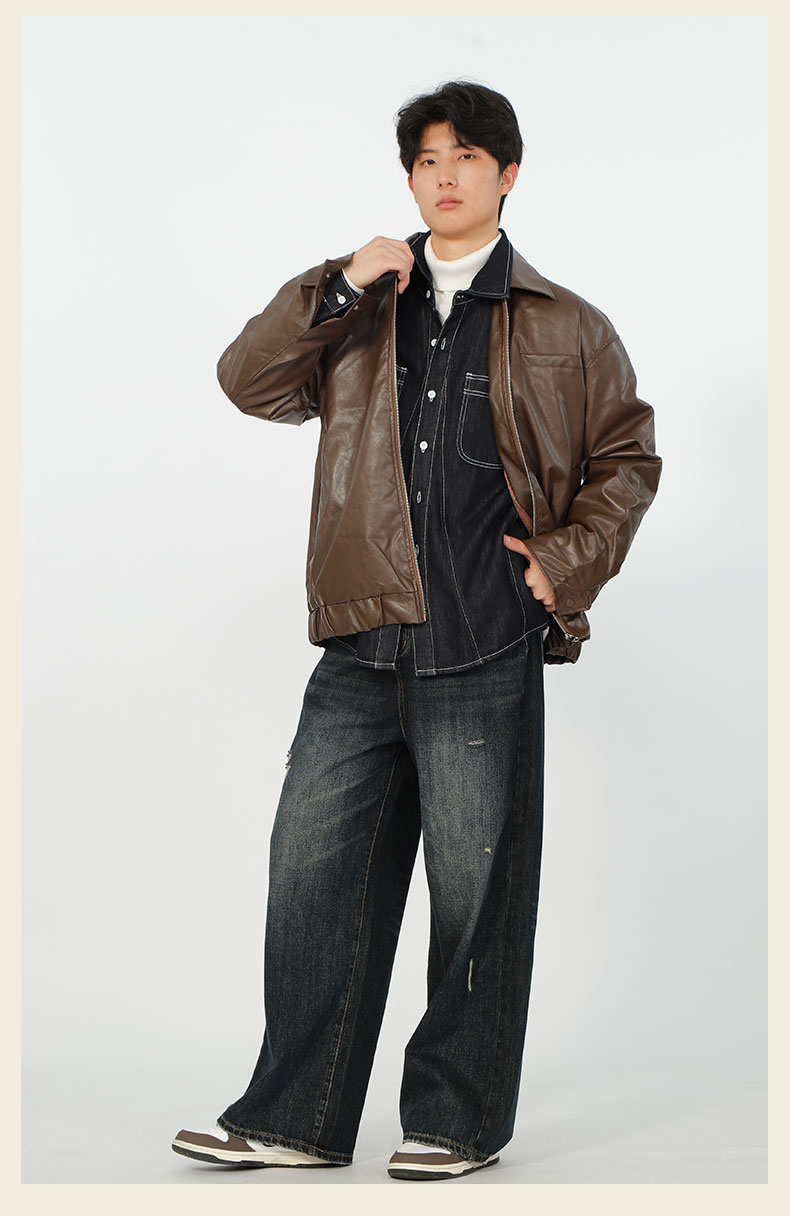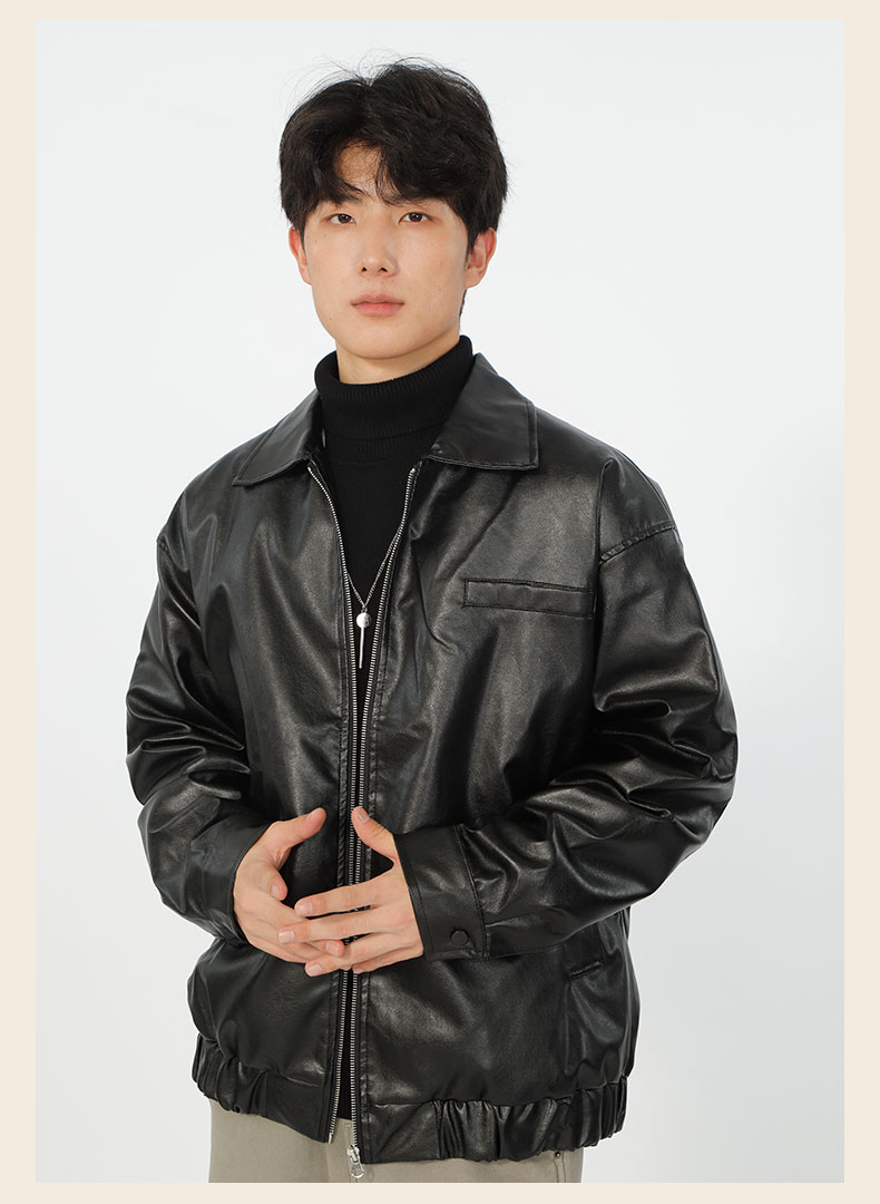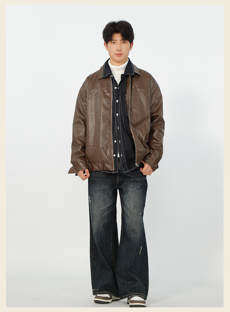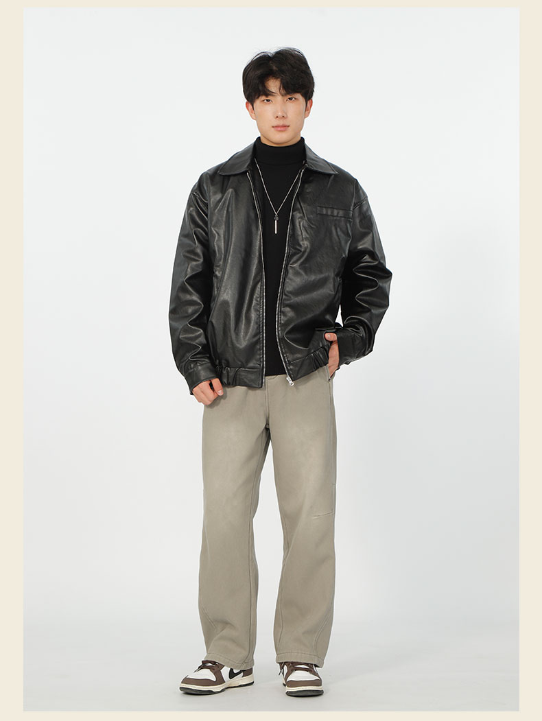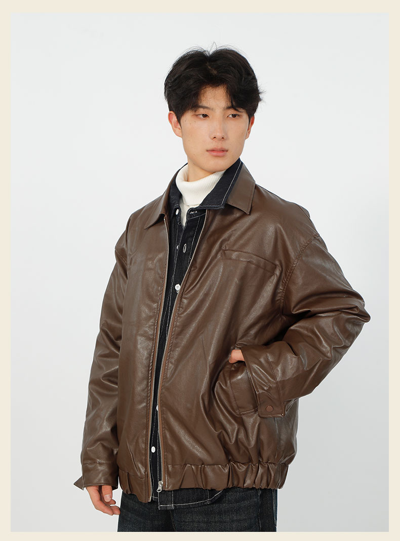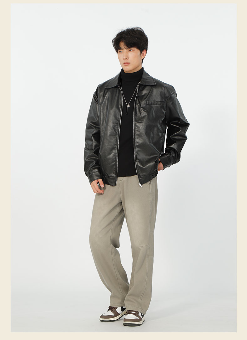 酷帅风简约韩系翻领皮衣-纪念日百货门店同款166296411