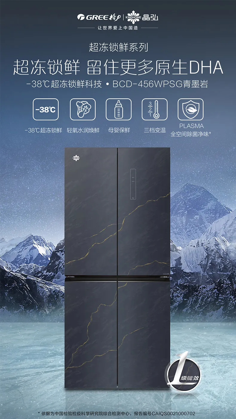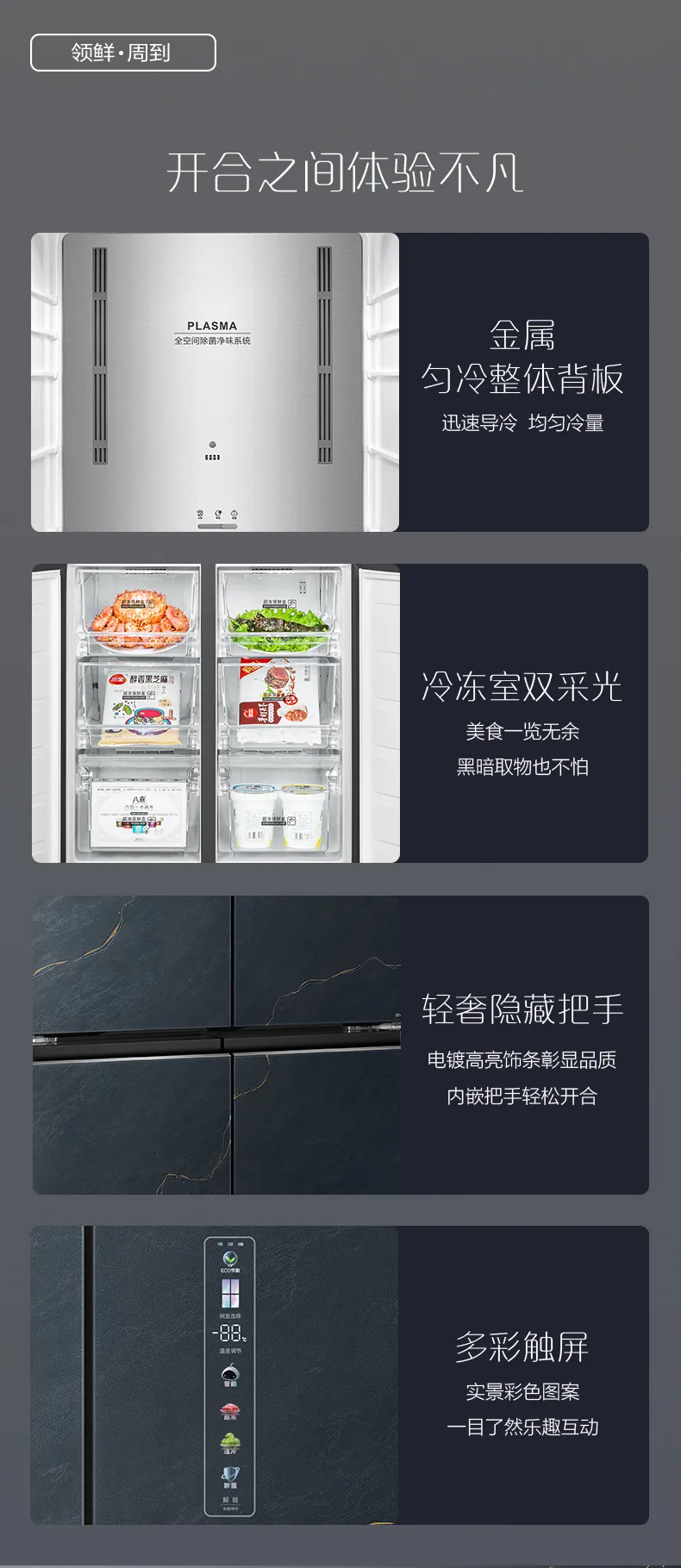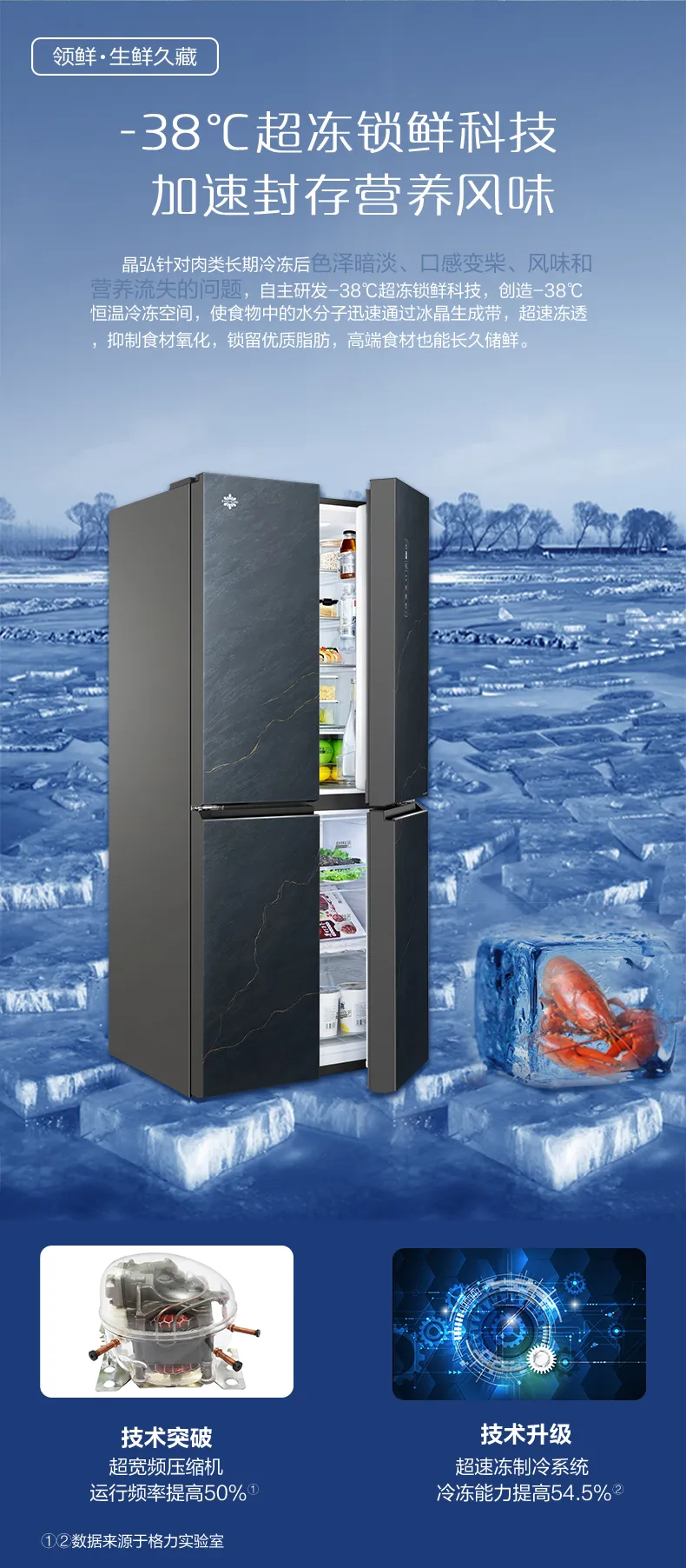 晶弘·十字对开门冰箱 456L BCD-456WPSG/青墨岩