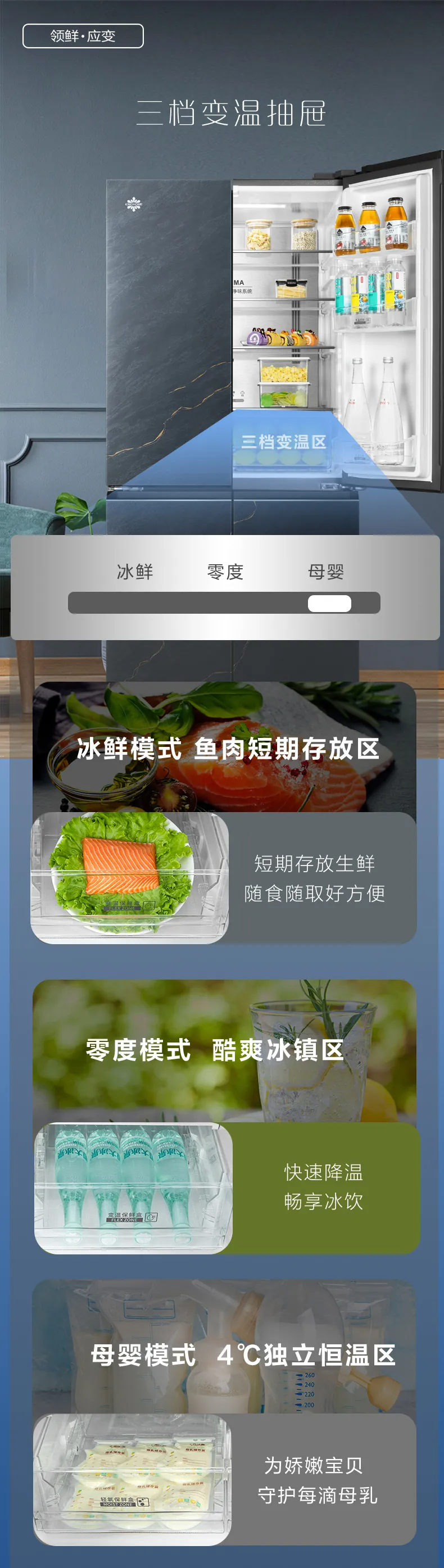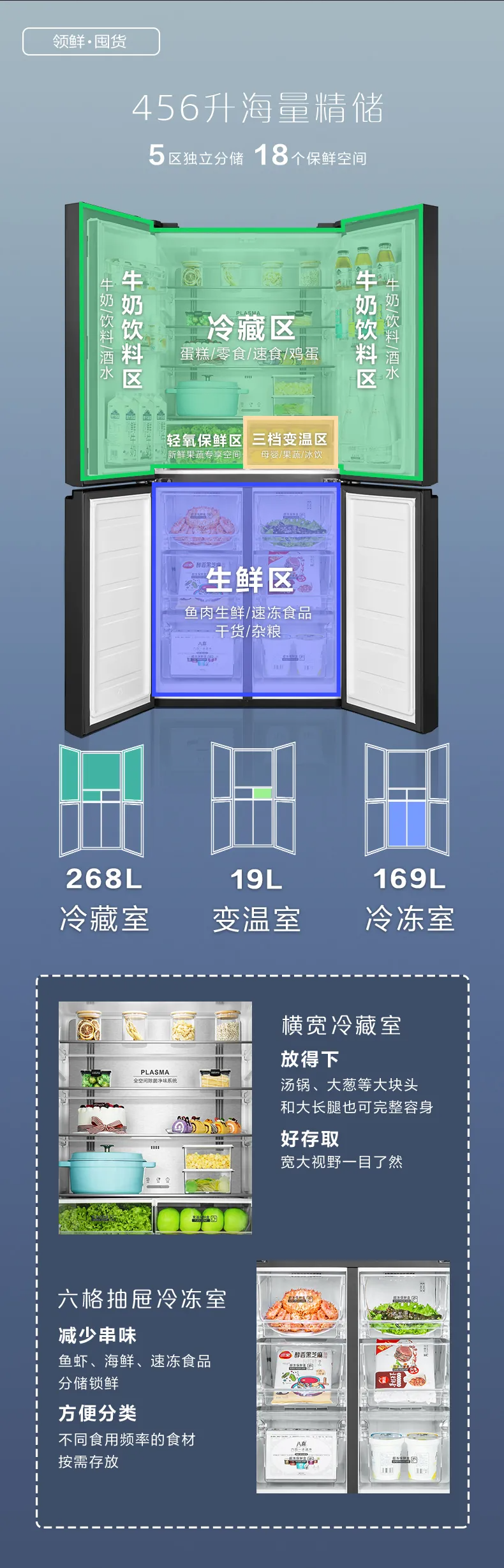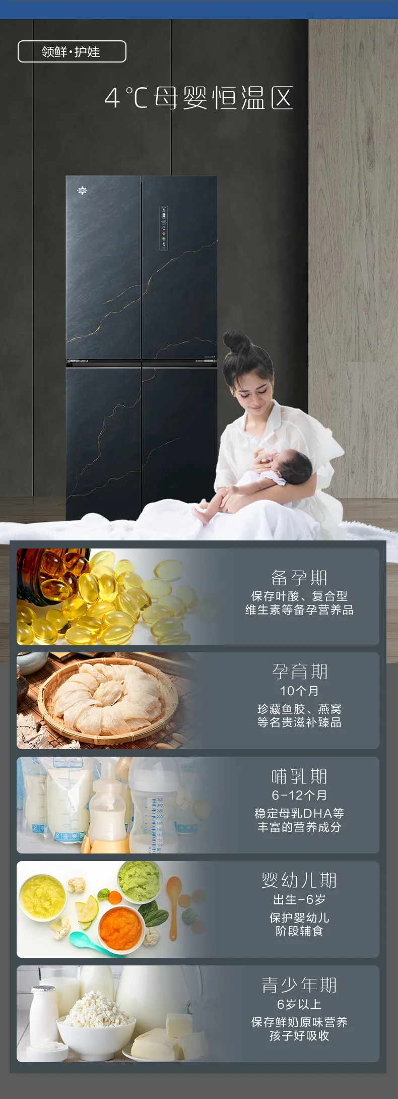 晶弘·十字对开门冰箱 456L BCD-456WPSG/青墨岩