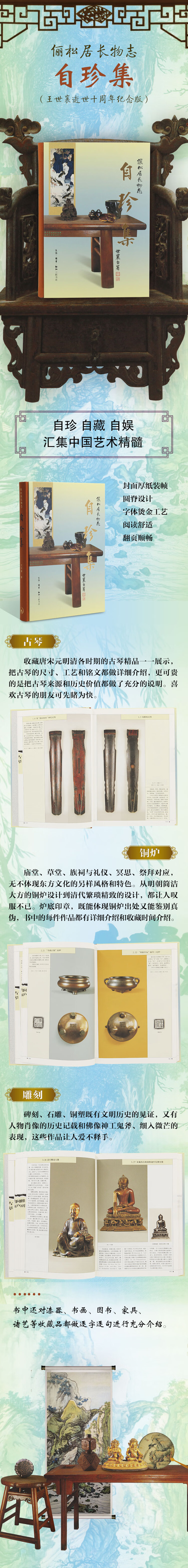 古琴、铜炉、雕刻、漆器、竹刻、书画、图书、家具、诸艺、玩具,全书分十个类别,呈现王世襄先生的藏品和收藏故事。近三百件藏品,上至文人雅士相携同游、消块垒、寄胸怀之伴侣,下含市井小民亦善好赏鉴的器具玩物,每件俱详细标明年代、来历、材质、制作工艺和传承意义,为鉴赏者提供详实可信的资料,打开一个充满情趣与意味的世界。其中风雅,若观察赏析,当得片刻清娱,其中岁月,更可使读者有所会心。