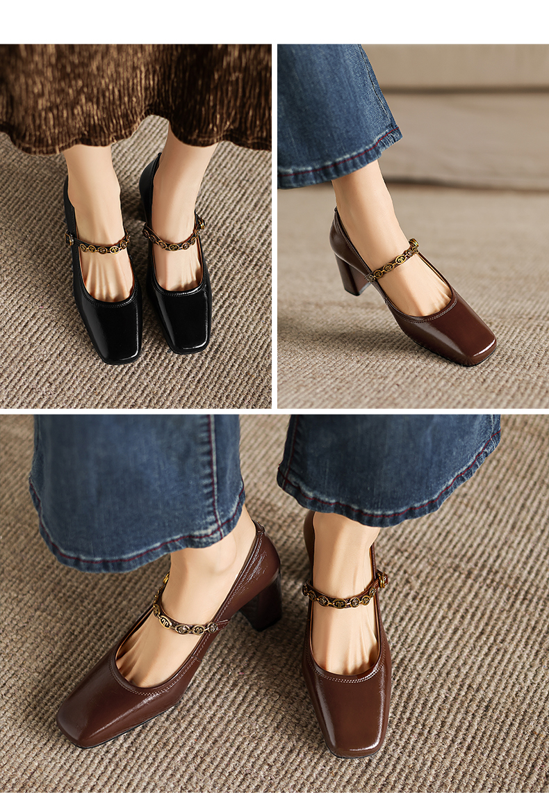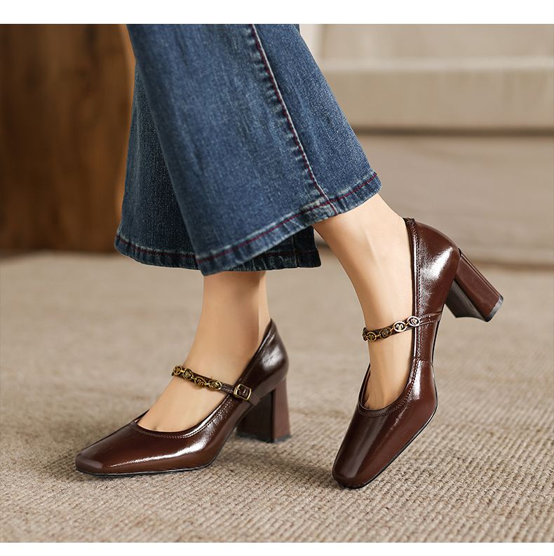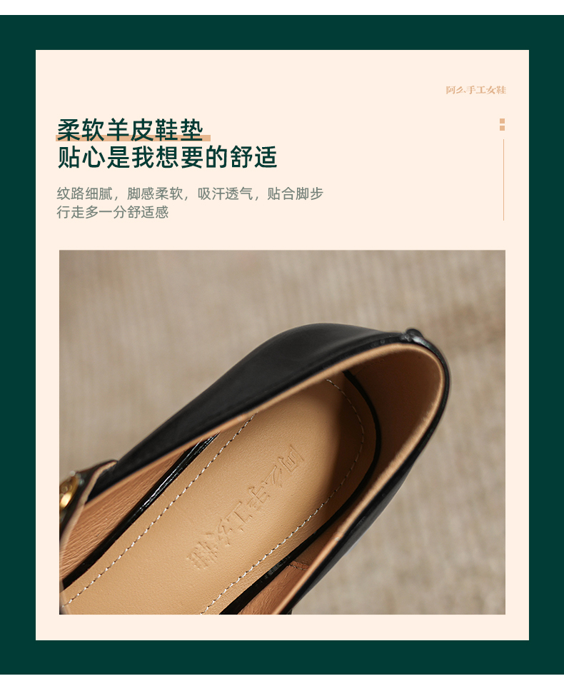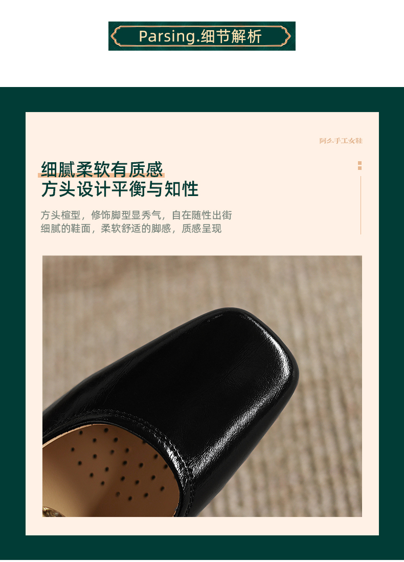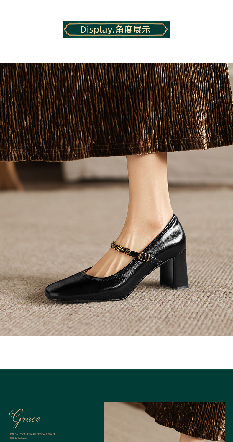 阿么手工女鞋法式气质高跟单鞋春季新款金属一字带玛丽珍鞋6.5CM