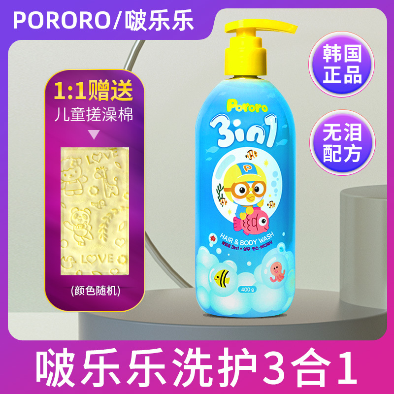 XDR 韩国Pororo啵乐乐洗护沐三合一400g送 海绵