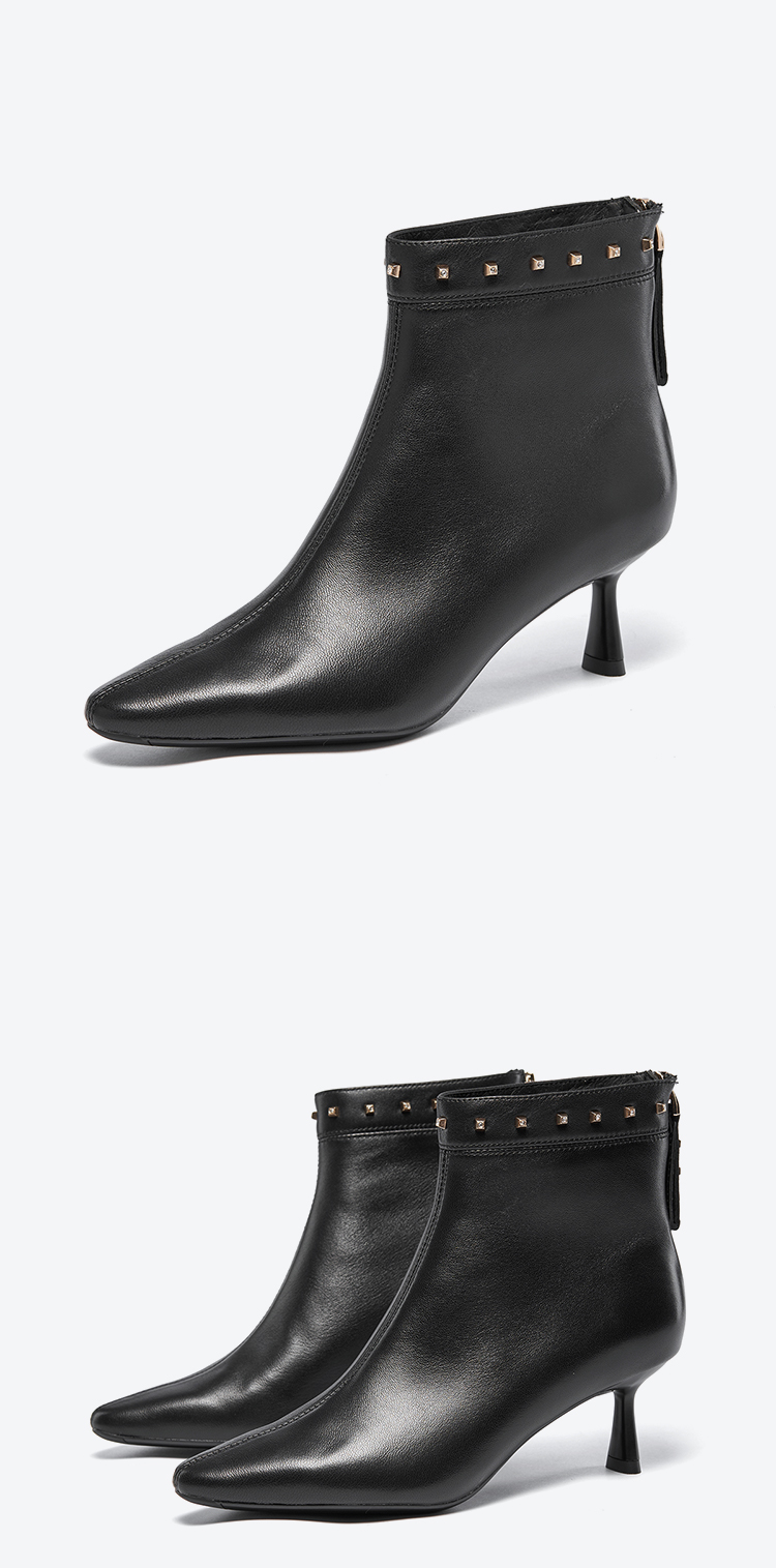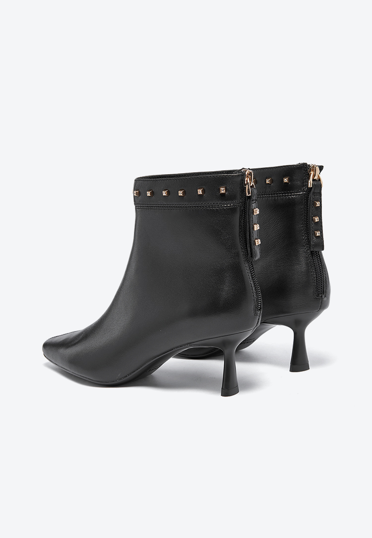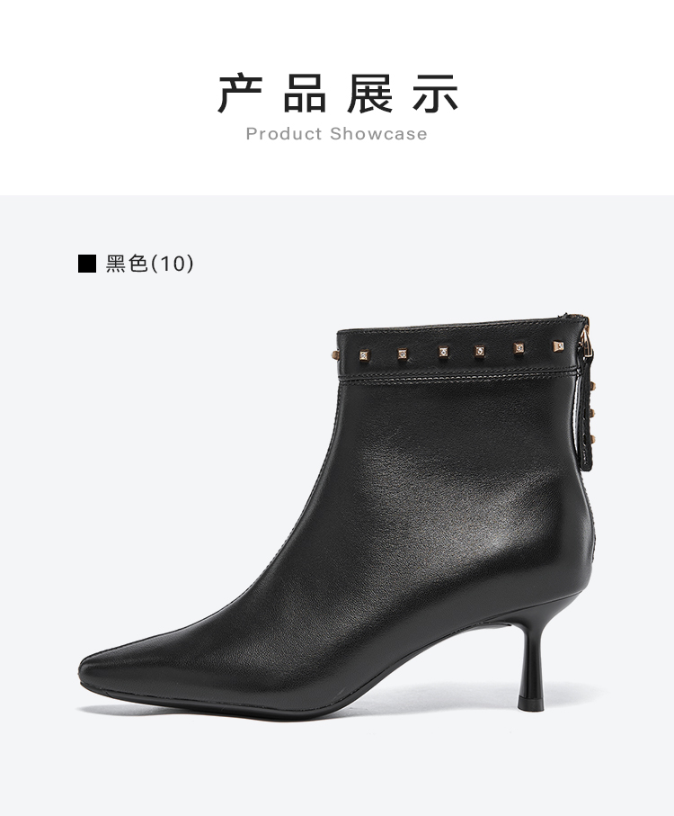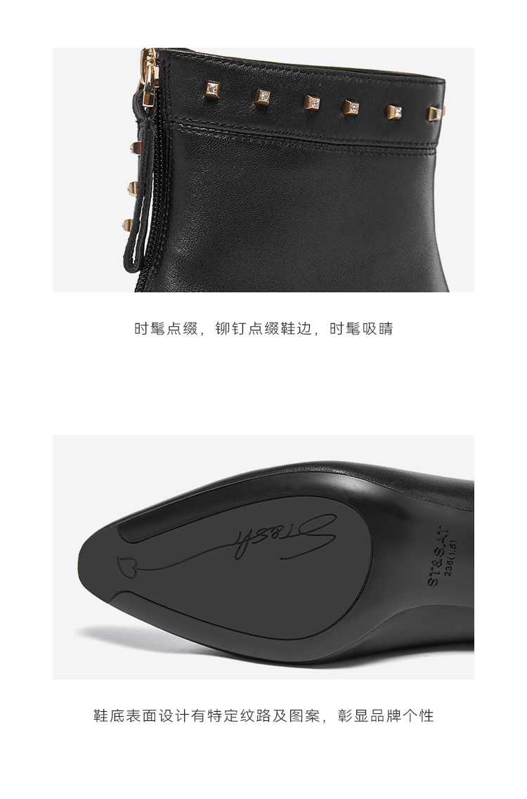 星期六摩登铆钉扣饰尖头细高跟短靴SSC4116405