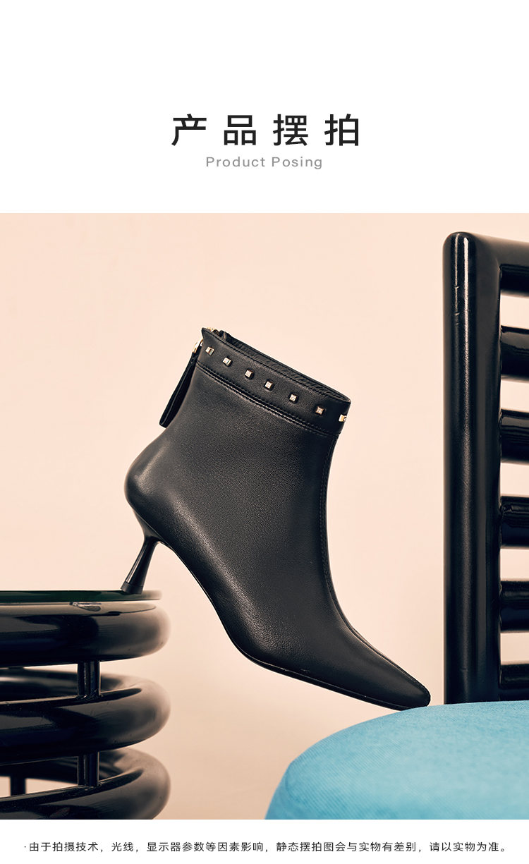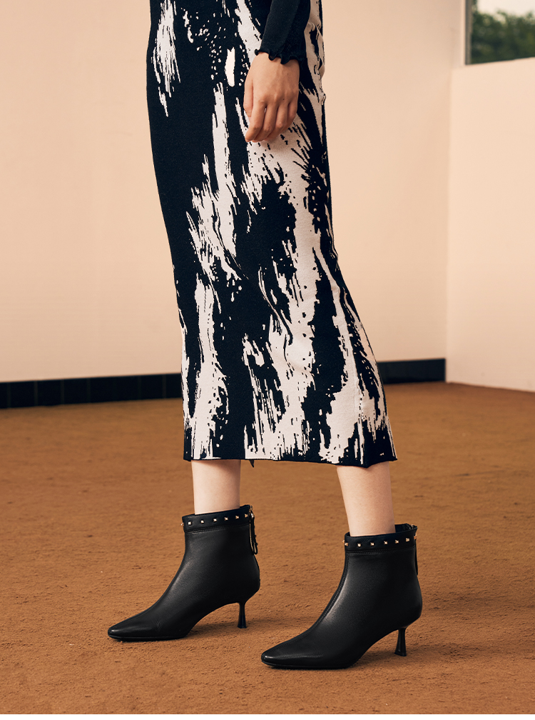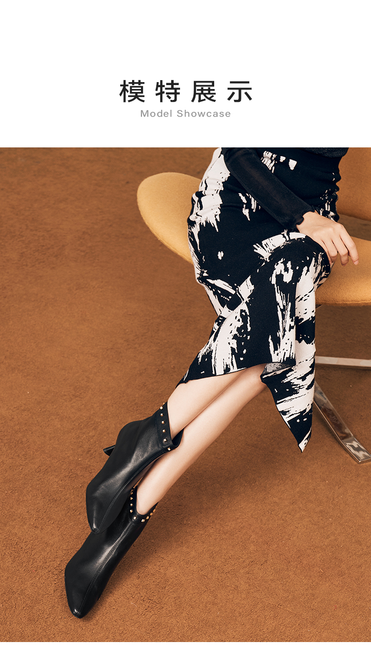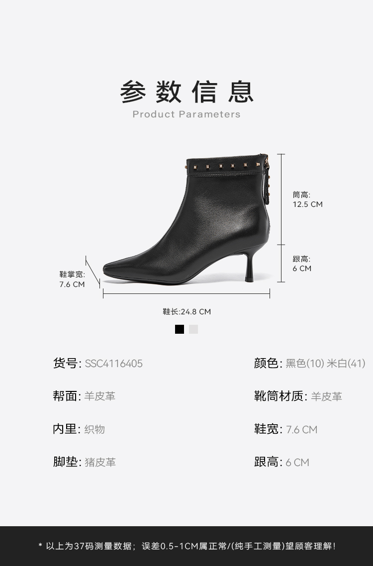 星期六摩登铆钉扣饰尖头细高跟短靴SSC4116405