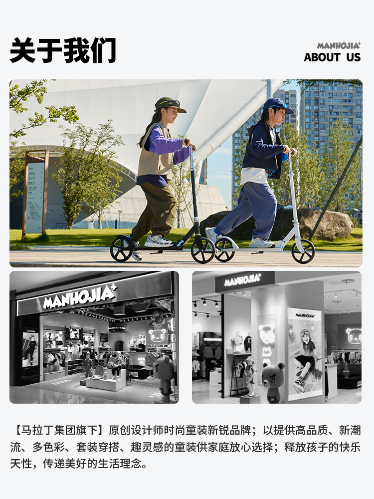 - 马拉丁旗下的城市户外潮童品牌,为3-12岁的孩子提供实用与细节设计的时尚度童装,打造现代简潮和城市户外感的着装,man游童年的冒险jia!