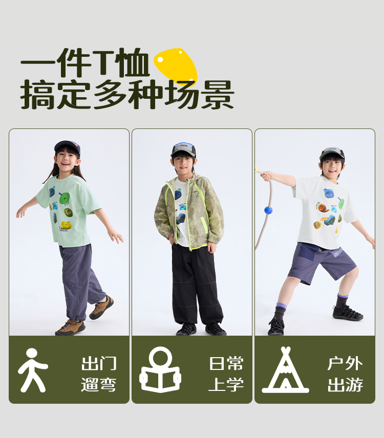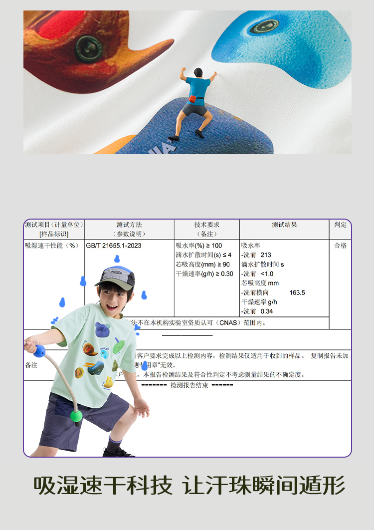 漫画家【抗菌攀岩T】儿童T恤吸湿速干抗菌防晒运动训练攀岩T男女
