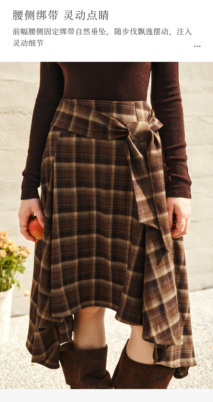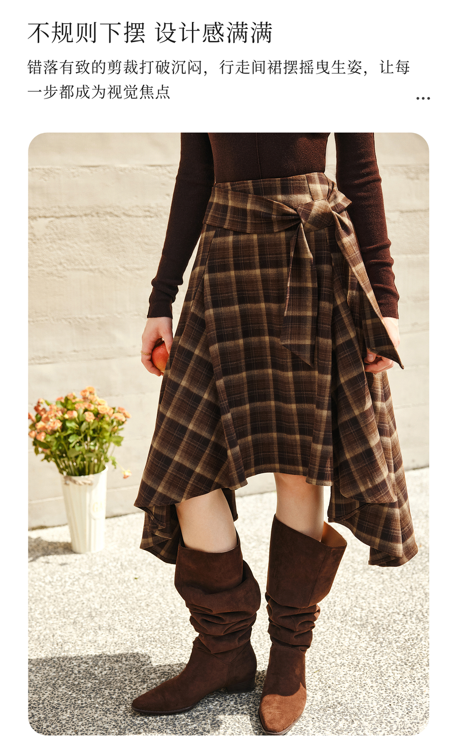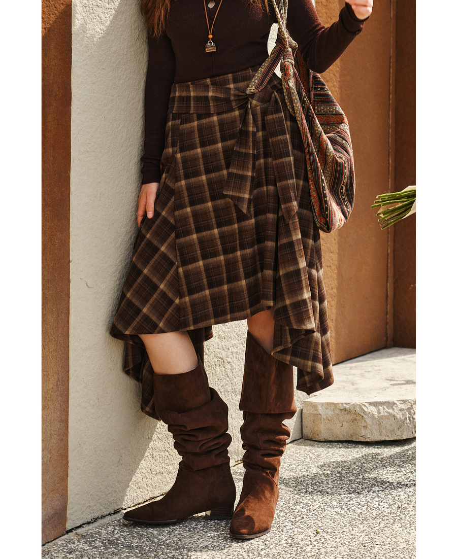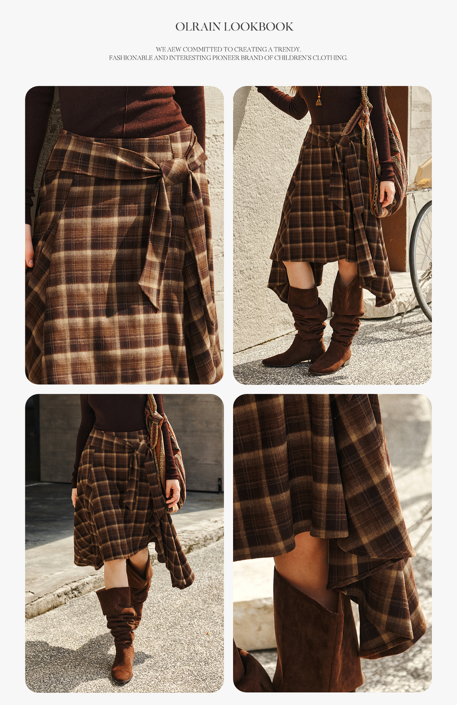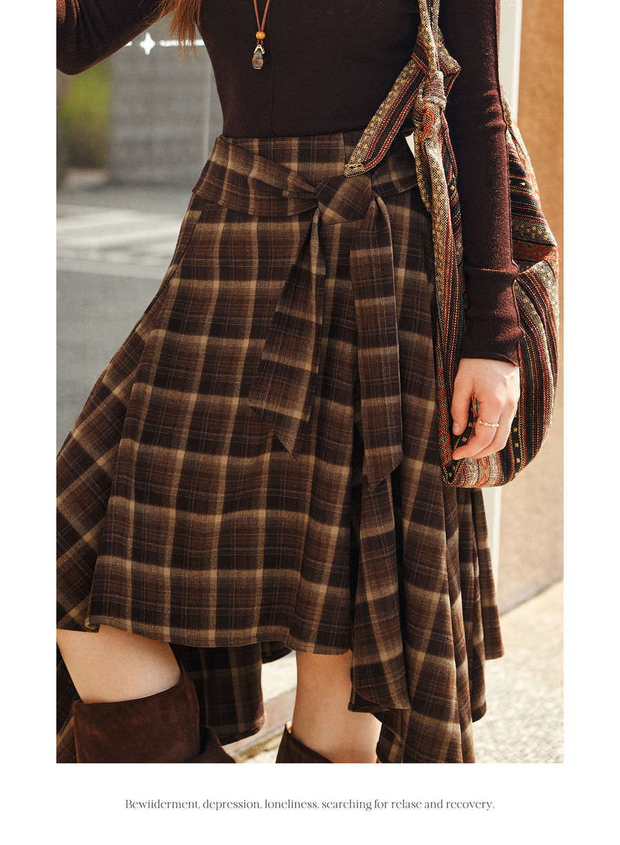 OLrain欧芮儿2025新款女冬季美拉德格子不规则设计感中腰半身裙