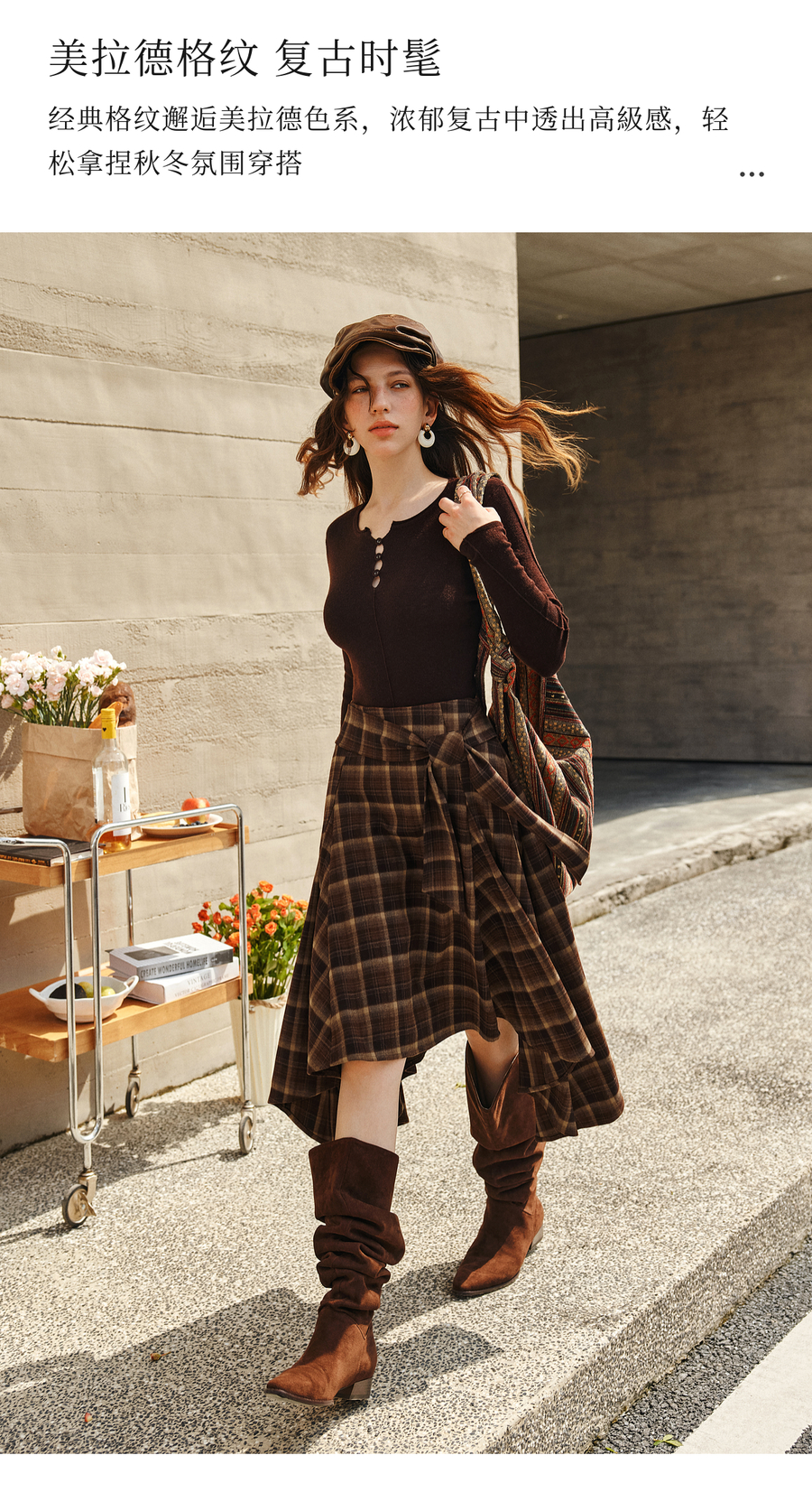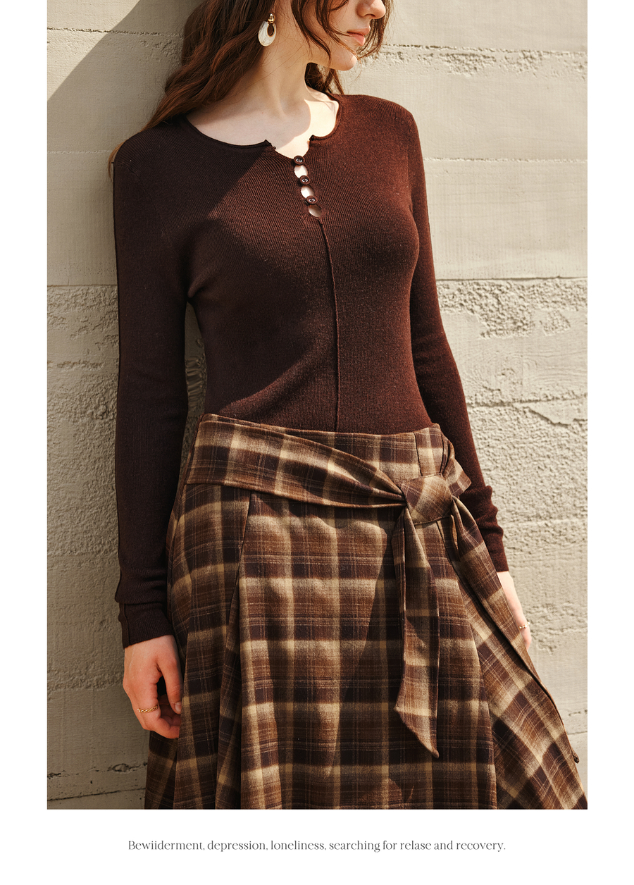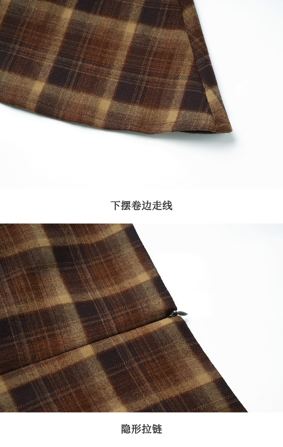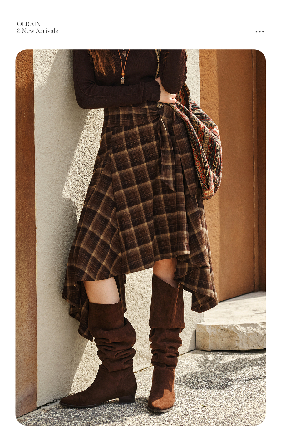 OLrain欧芮儿2025新款女冬季美拉德格子不规则设计感中腰半身裙