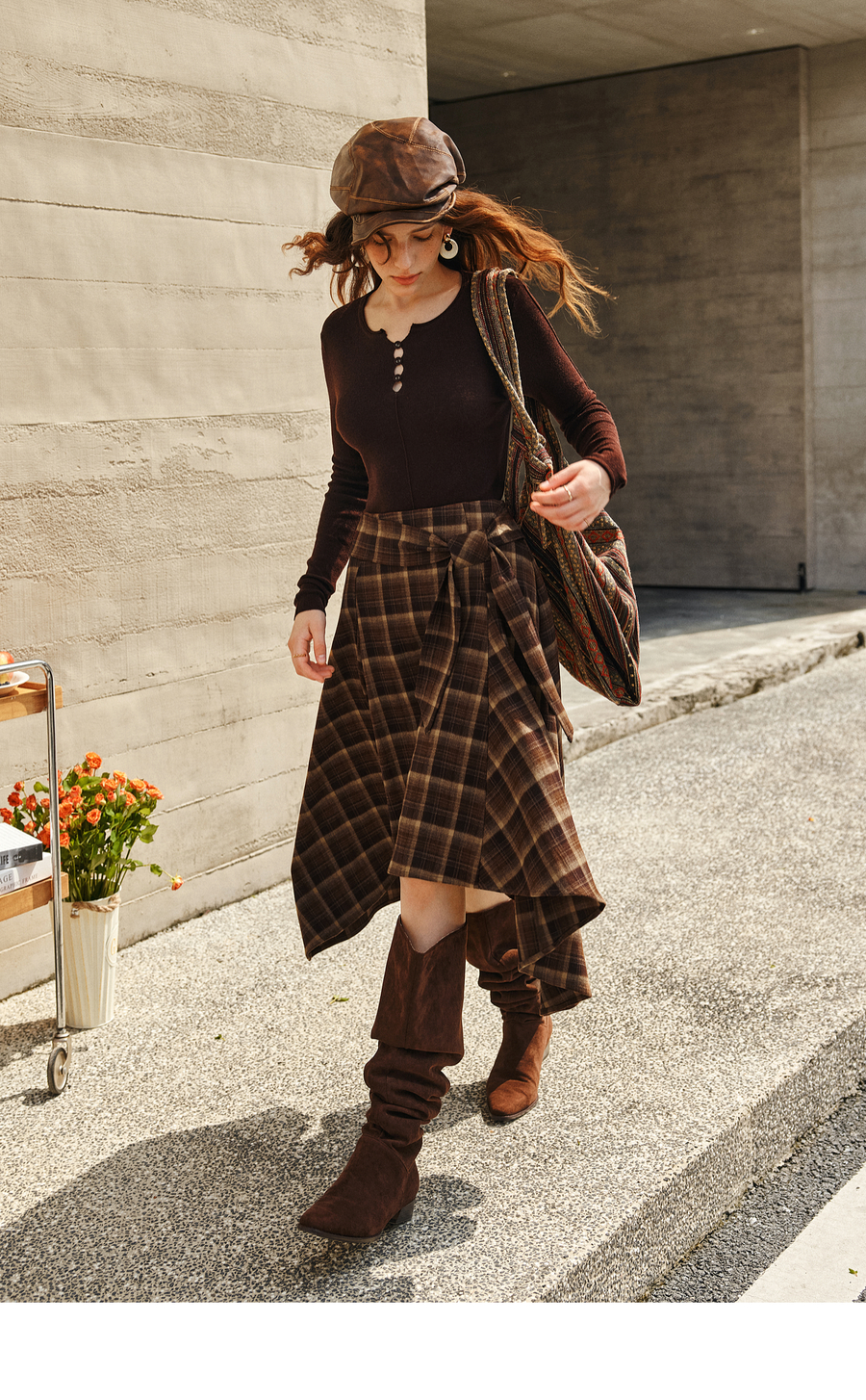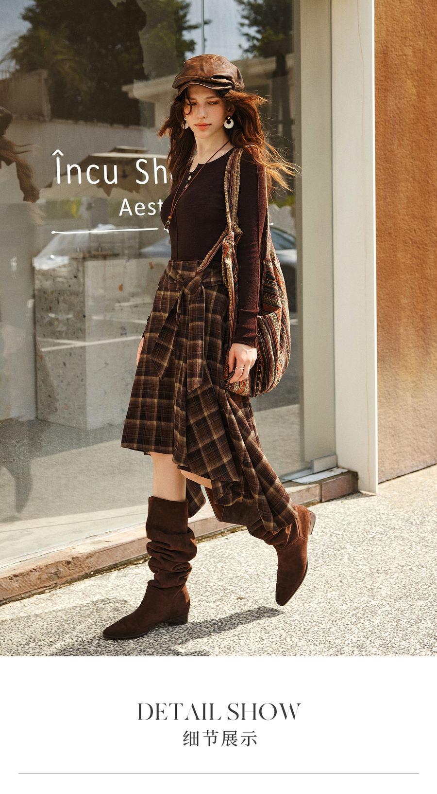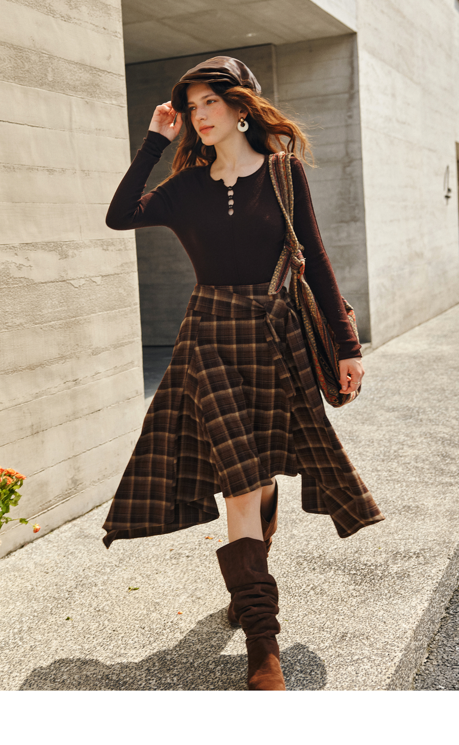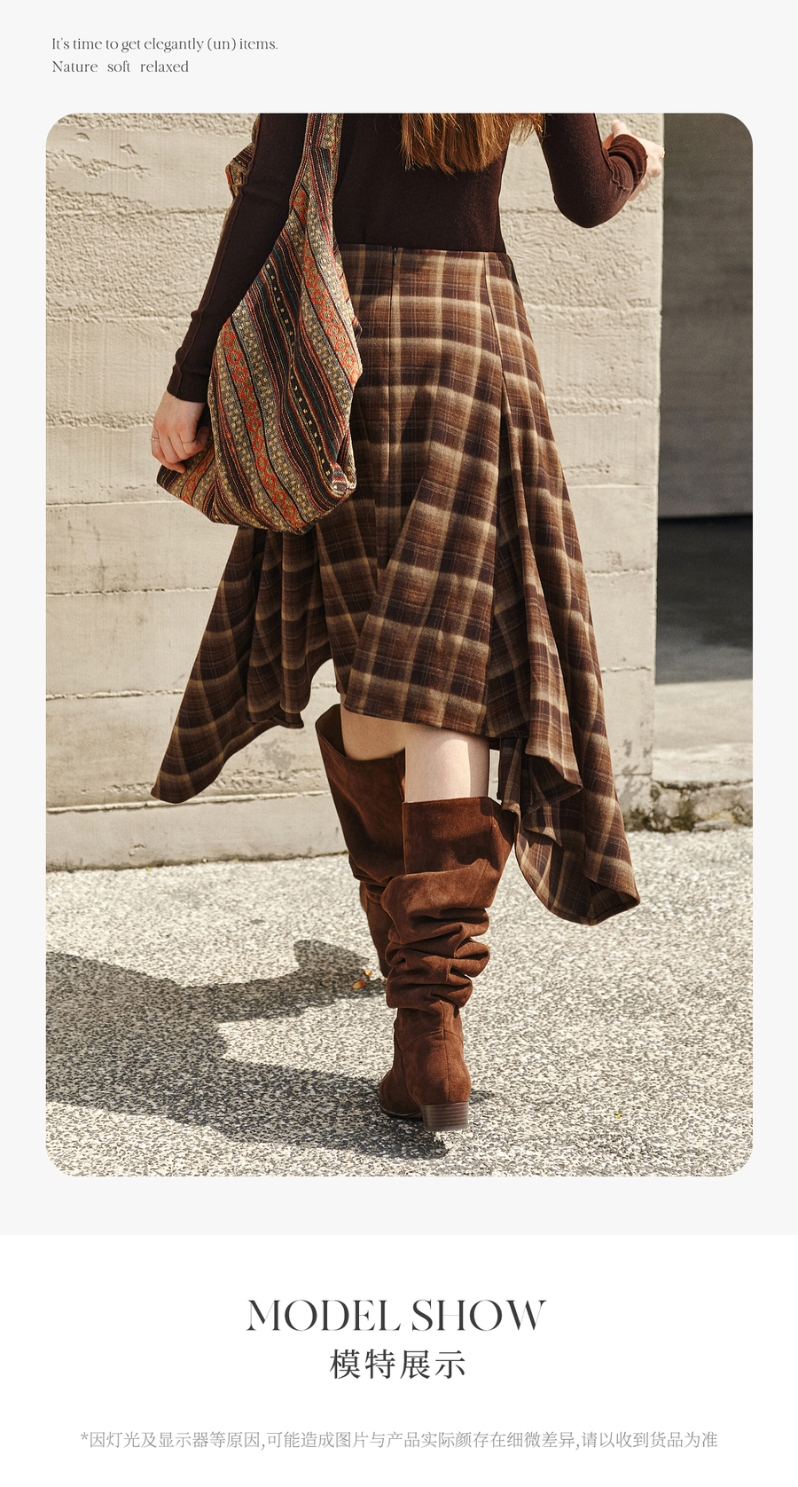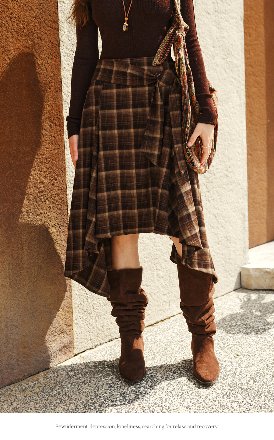 OLrain欧芮儿2025新款女冬季美拉德格子不规则设计感中腰半身裙