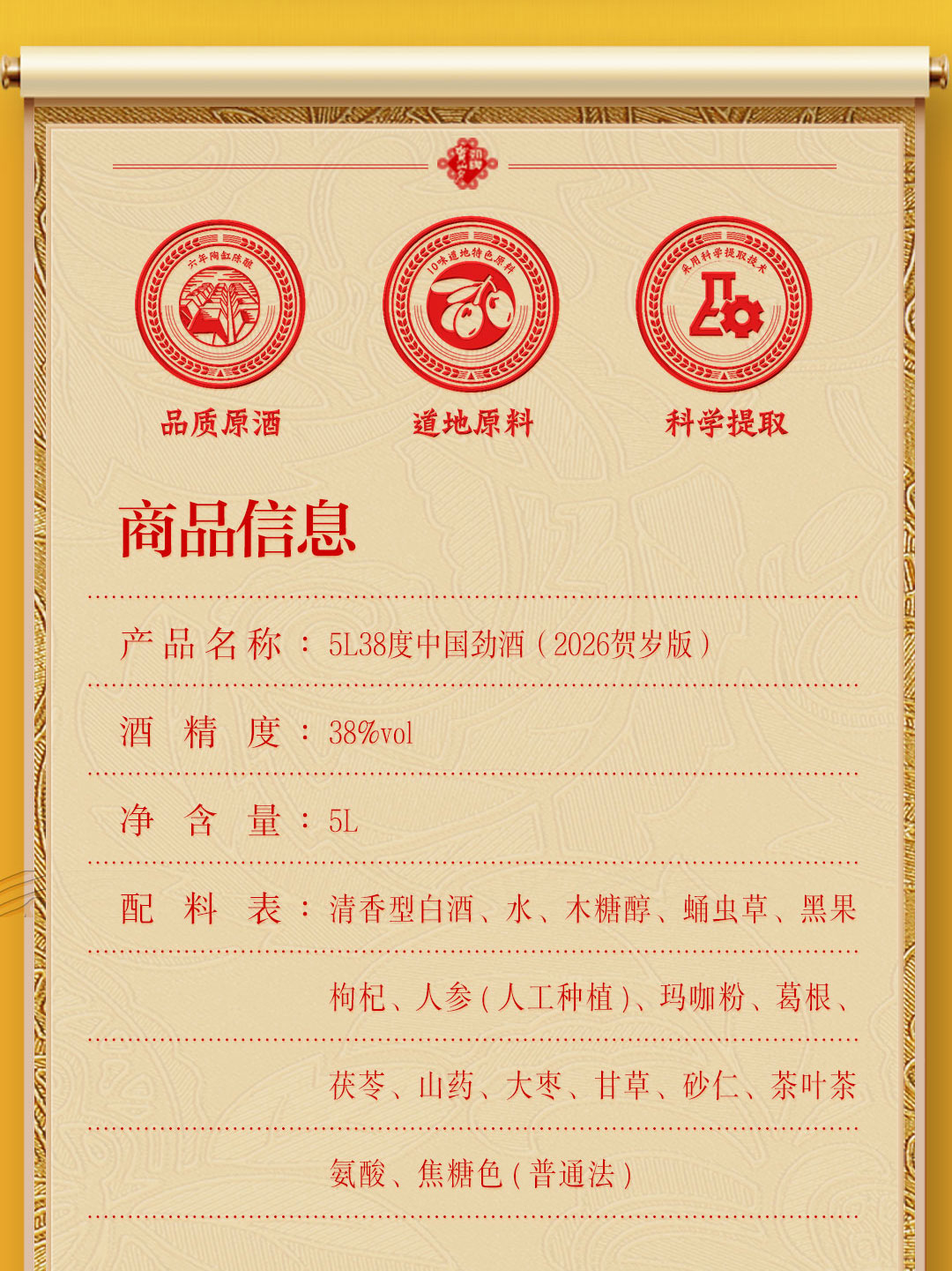 【2026新春贺岁版】38度中国劲酒5L 食字号