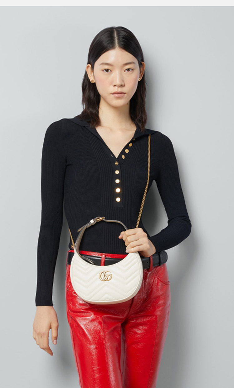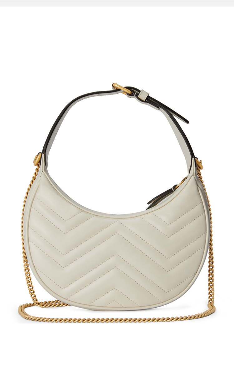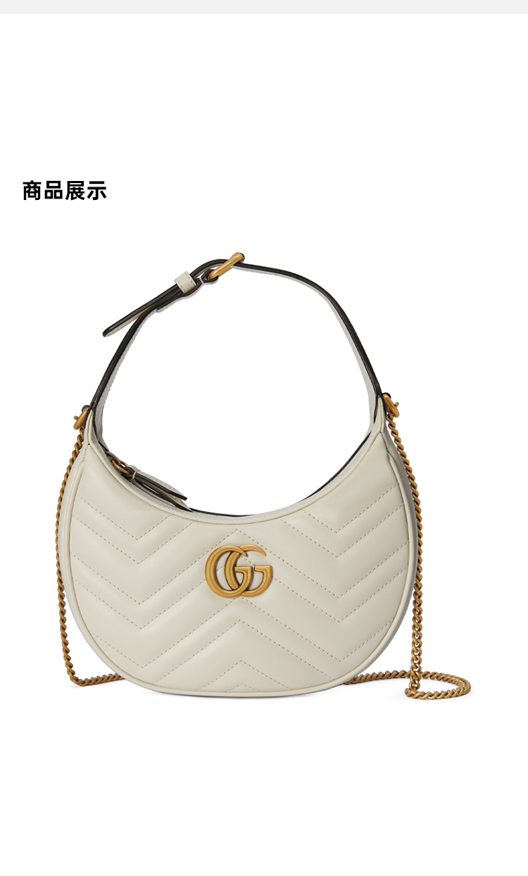 【二】GUCCI 古驰 女士 GG Marmont系列 半月造型绗缝V型皮革迷你手提包 白色 699514 DTDHT 9022