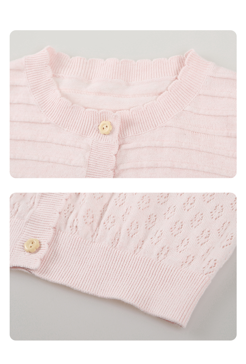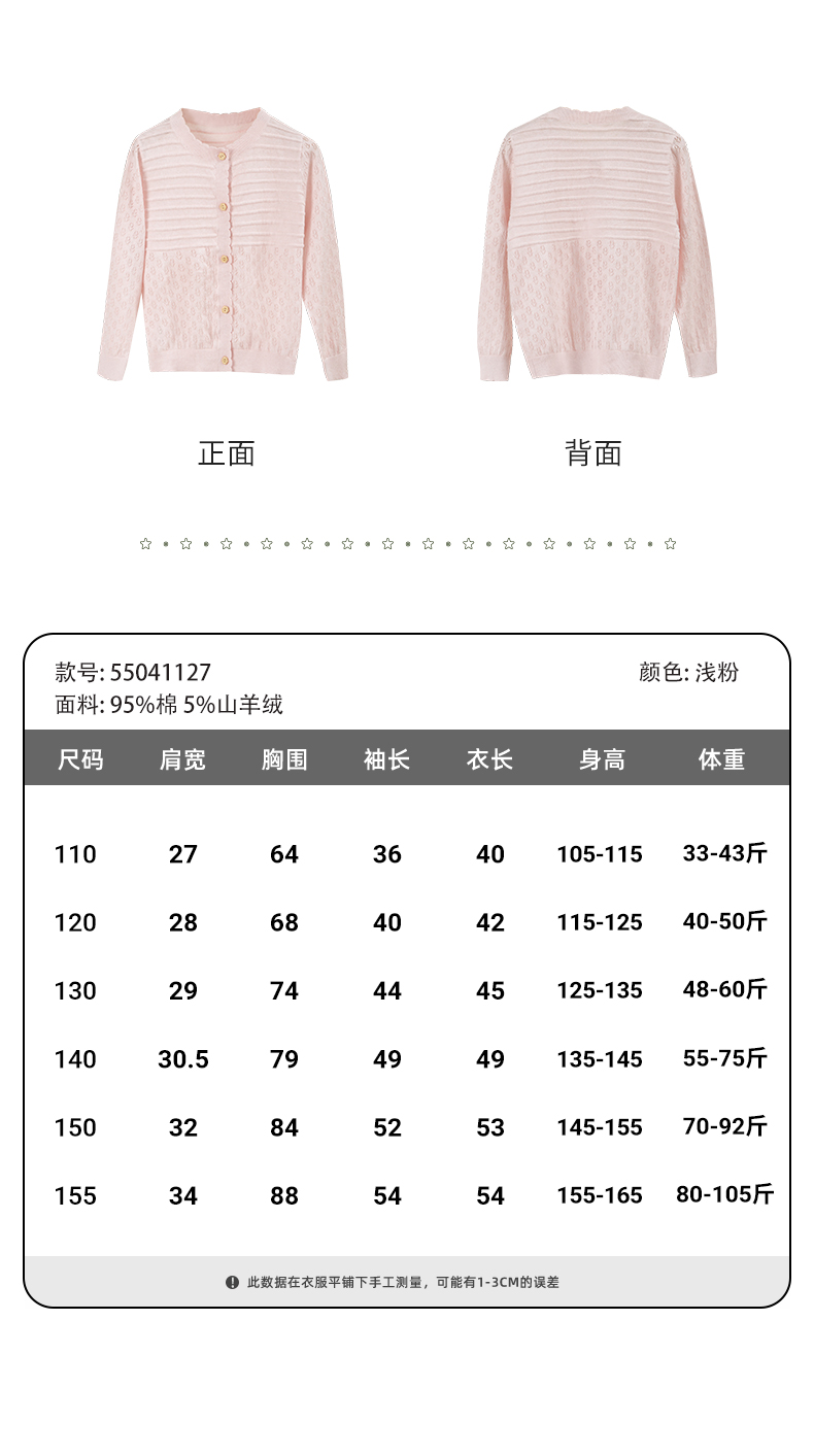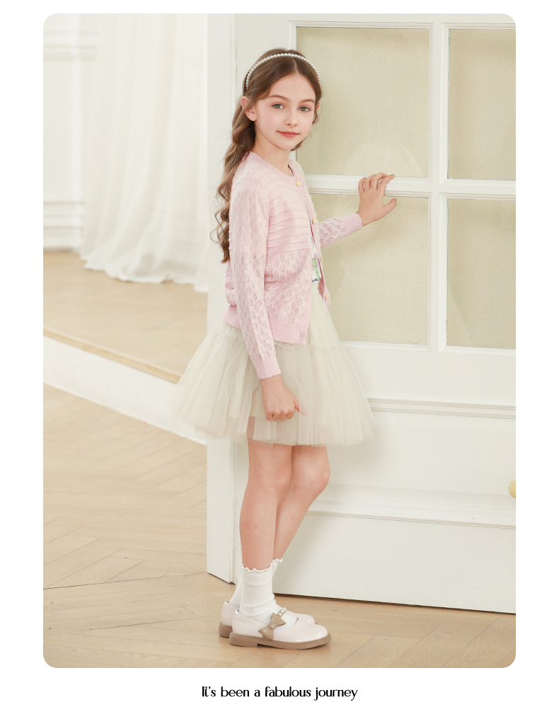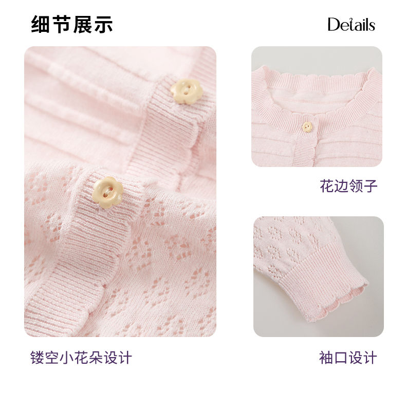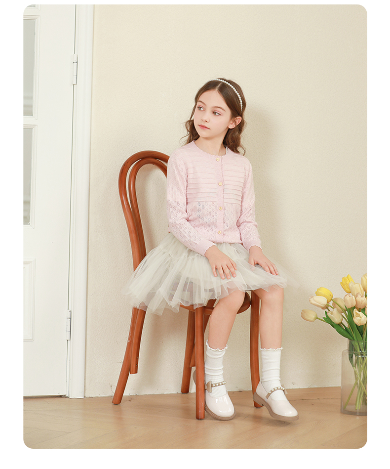 mettekids女童针织开衫2024春秋新款粉色镂空儿童棉羊绒洋气童装