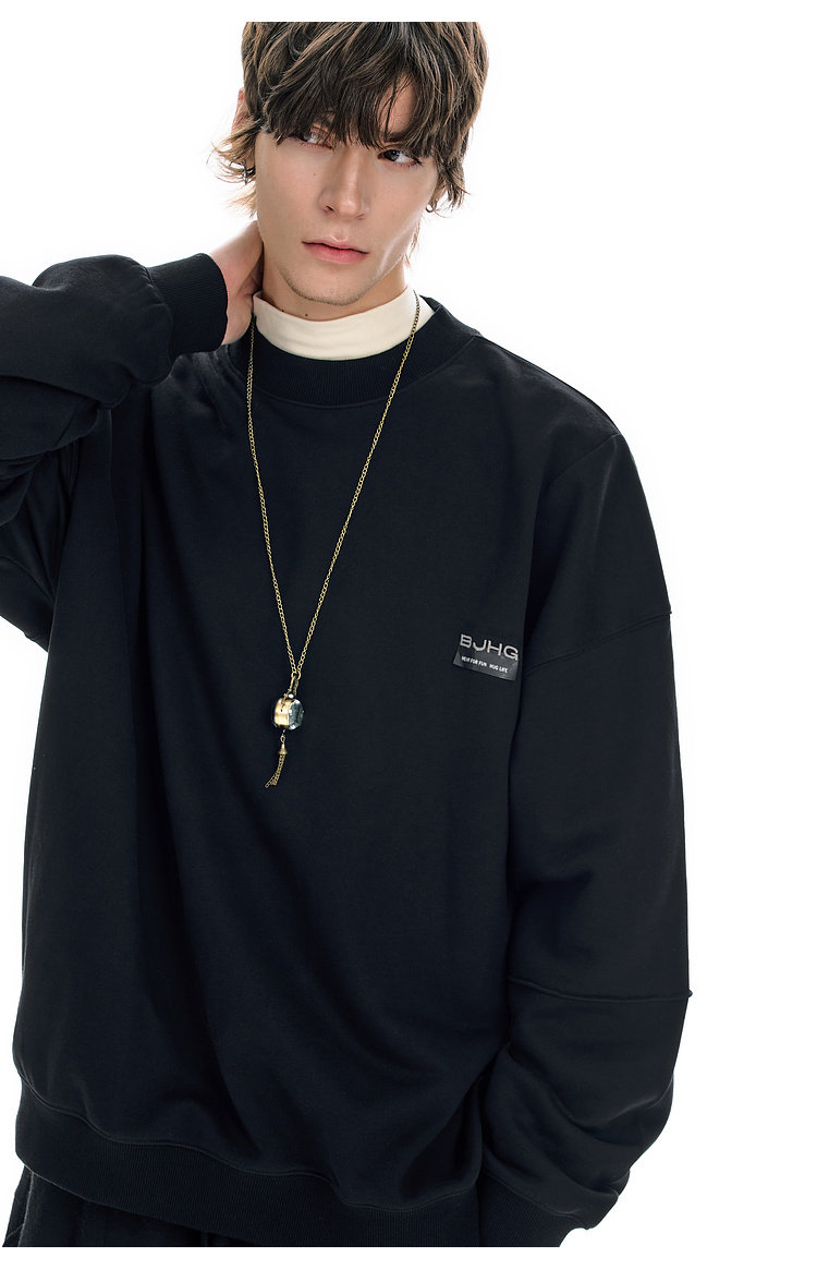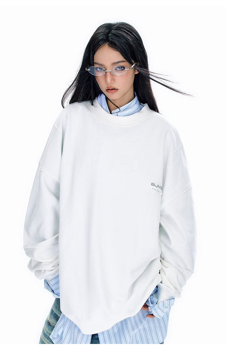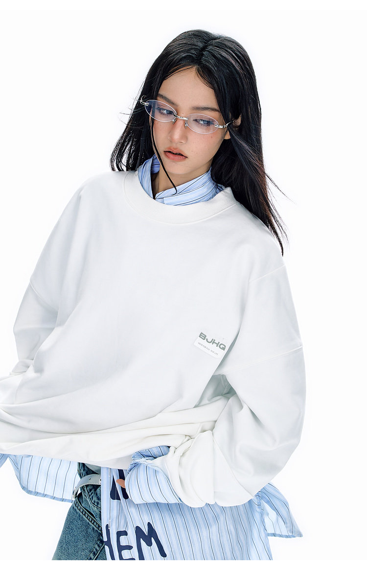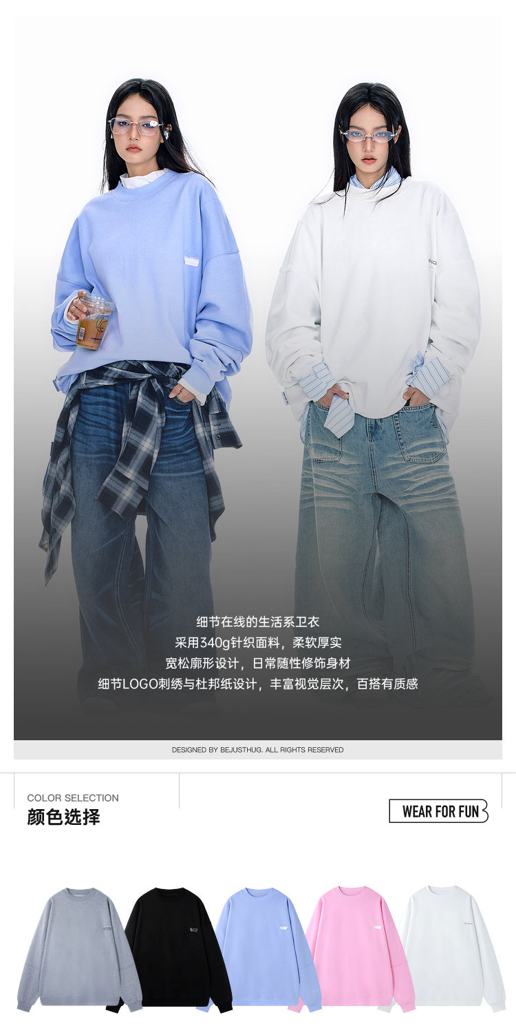 BJHG不计后果圆领情侣长袖T恤男款春季美式刺绣宽松基础款卫衣女