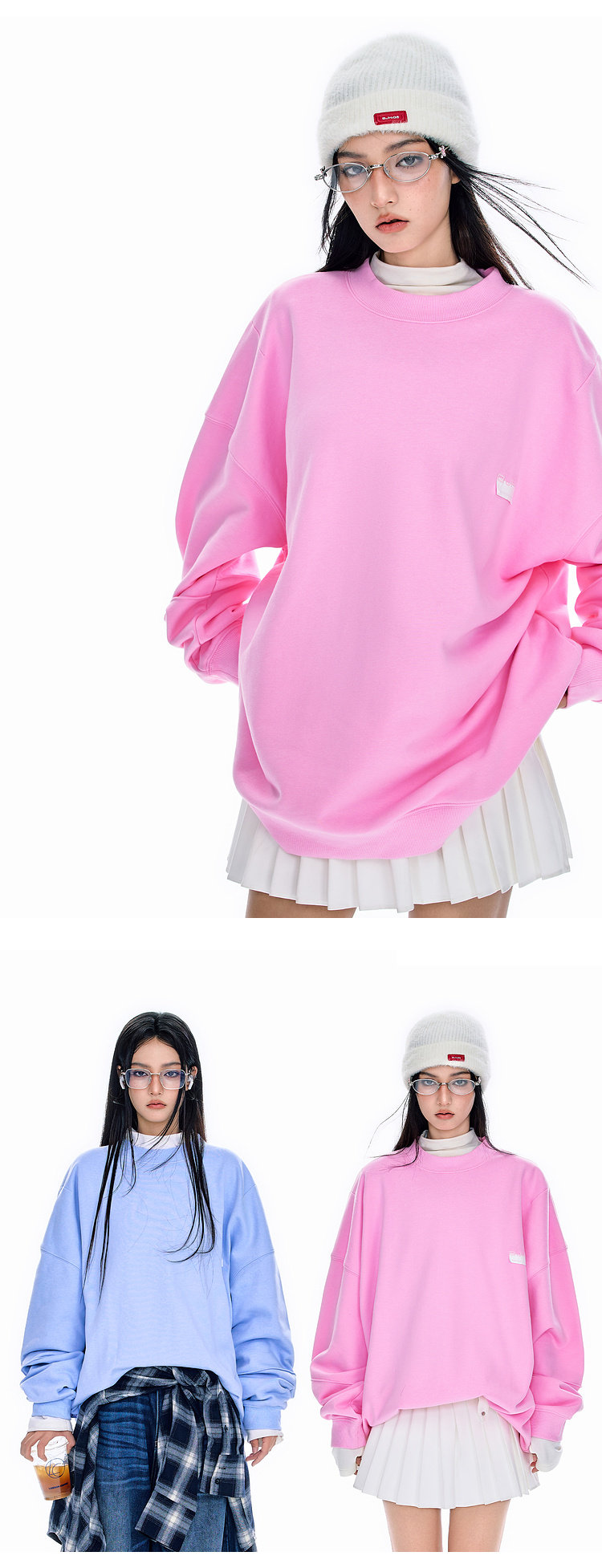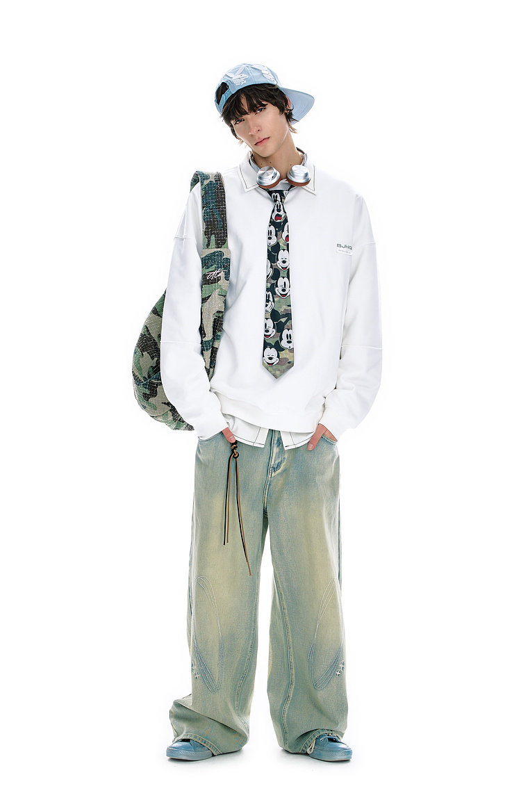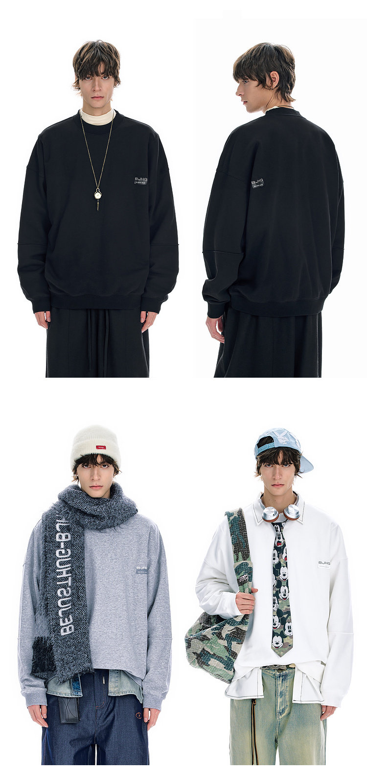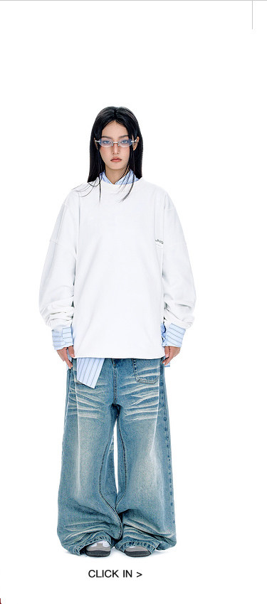 BJHG不计后果圆领情侣长袖T恤男款春季美式刺绣宽松基础款卫衣女