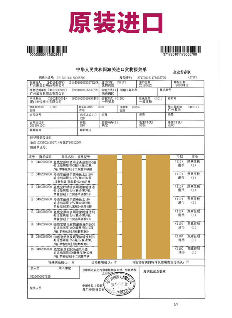 香港威宝厨房EX除菌清洁剂500ml