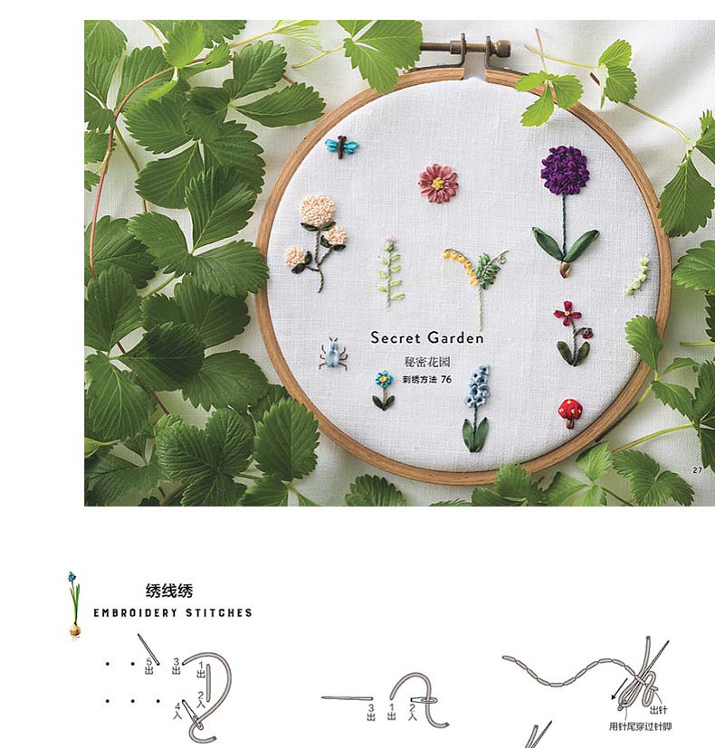 《欧式丝带绣:绽放的野花》一书收录了用3.5毫米宽的丝绸丝带制作而成的作品,是一本欧式风格的丝带刺绣书。欧洲丝带绣始于18世纪。书中作品吸取了欧式风格中鲜艳华丽的配色,融入了日式清新风格的美丽图案,成为一种新型风格的改良派作品。书中作品分为“立体”、“迷你型”、“可爱”三种,有可爱的花、植物、昆虫造型。