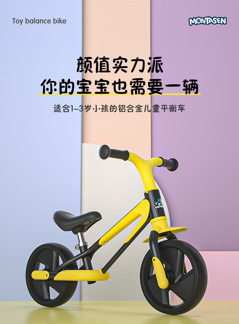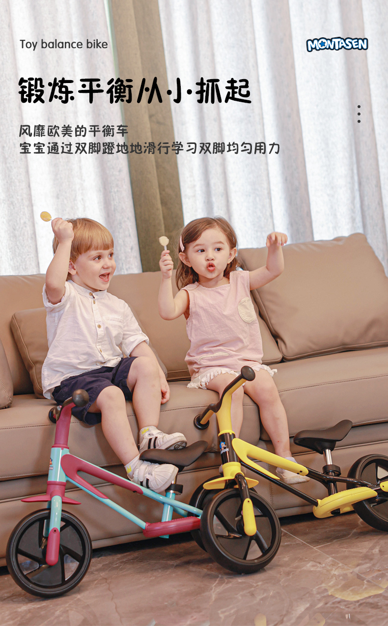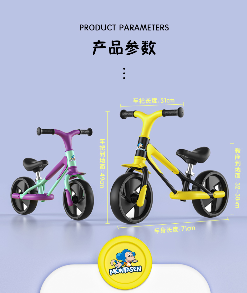 萌大圣montasen儿童平衡车1一3岁无脚踏女孩小童滑行车BB03 8寸