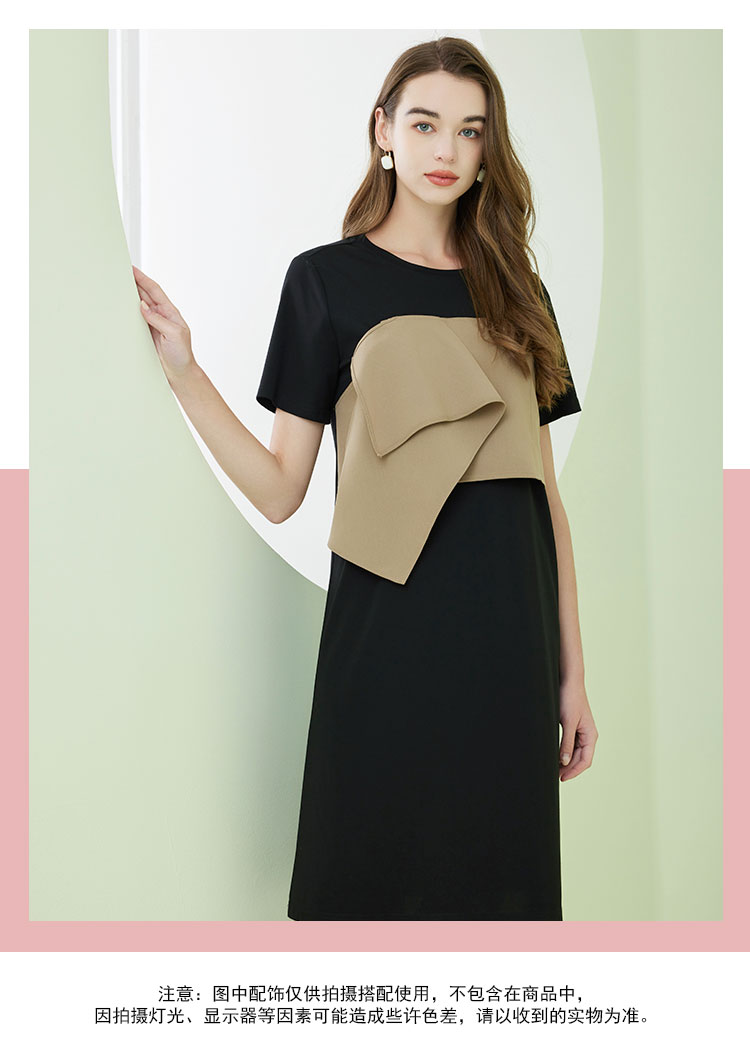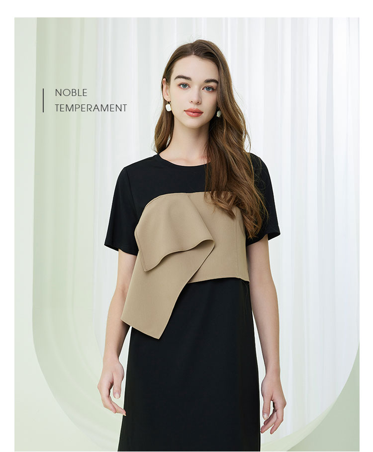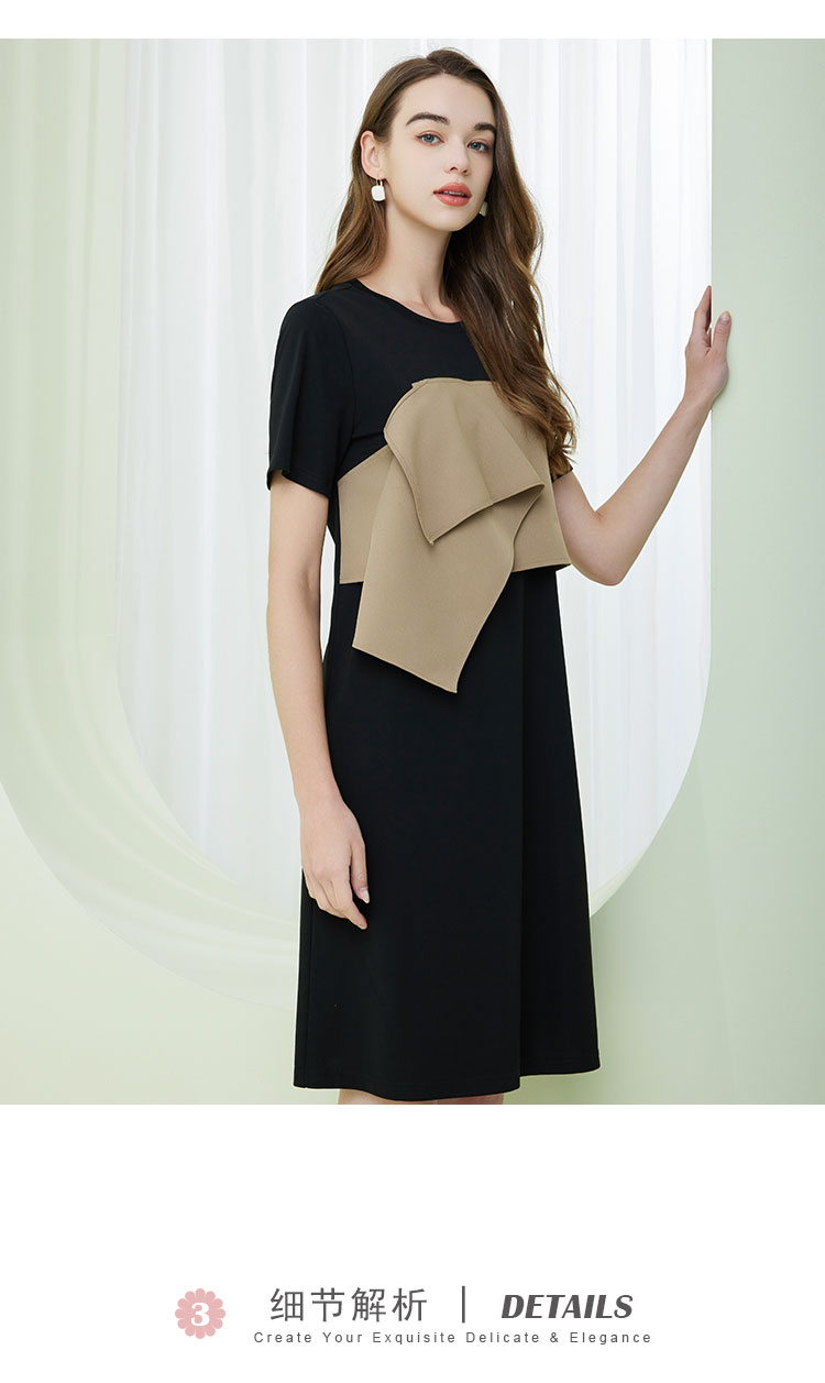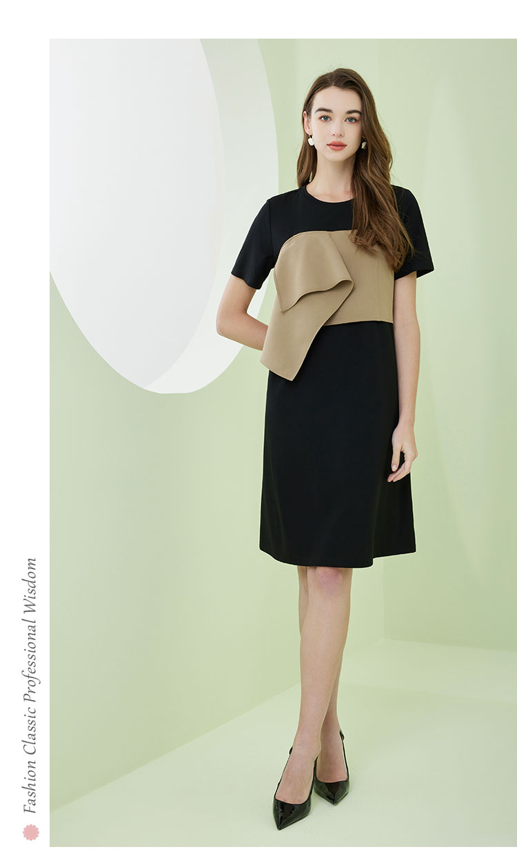 NF8A1斯尔丽瑟俪2023春夏新品时尚设计感撞色短袖连衣裙