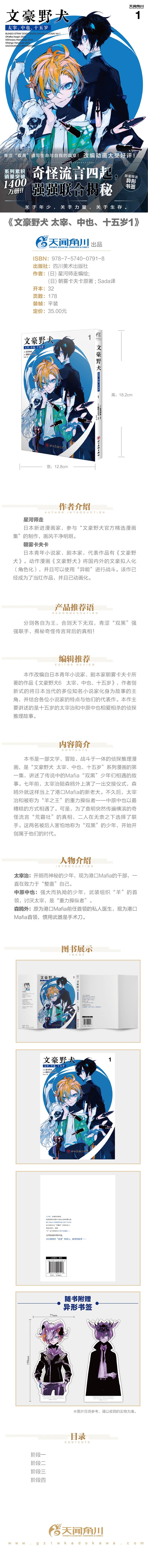 本作改编自日本青年小说家、剧本家朝雾卡夫卡所著的作品《文豪野犬6 太宰、中也、十五岁》,作者创新式的将日本当代的多位知名小说家化身为故事的主角,并结合各位小说家的特点与他们的代表作。本作主要讲述的是十五岁的太宰治和中原中也相爱相杀的侦探推理故事。“文豪野犬”系列销量累计突破1400万册!
