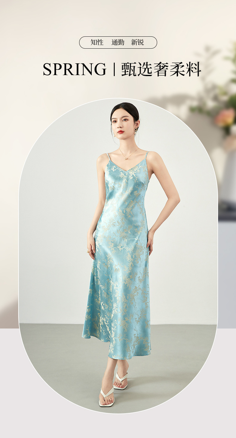 白月光清冷感法式气质典雅,吊带外穿醋酸连衣裙WLZD-2415109