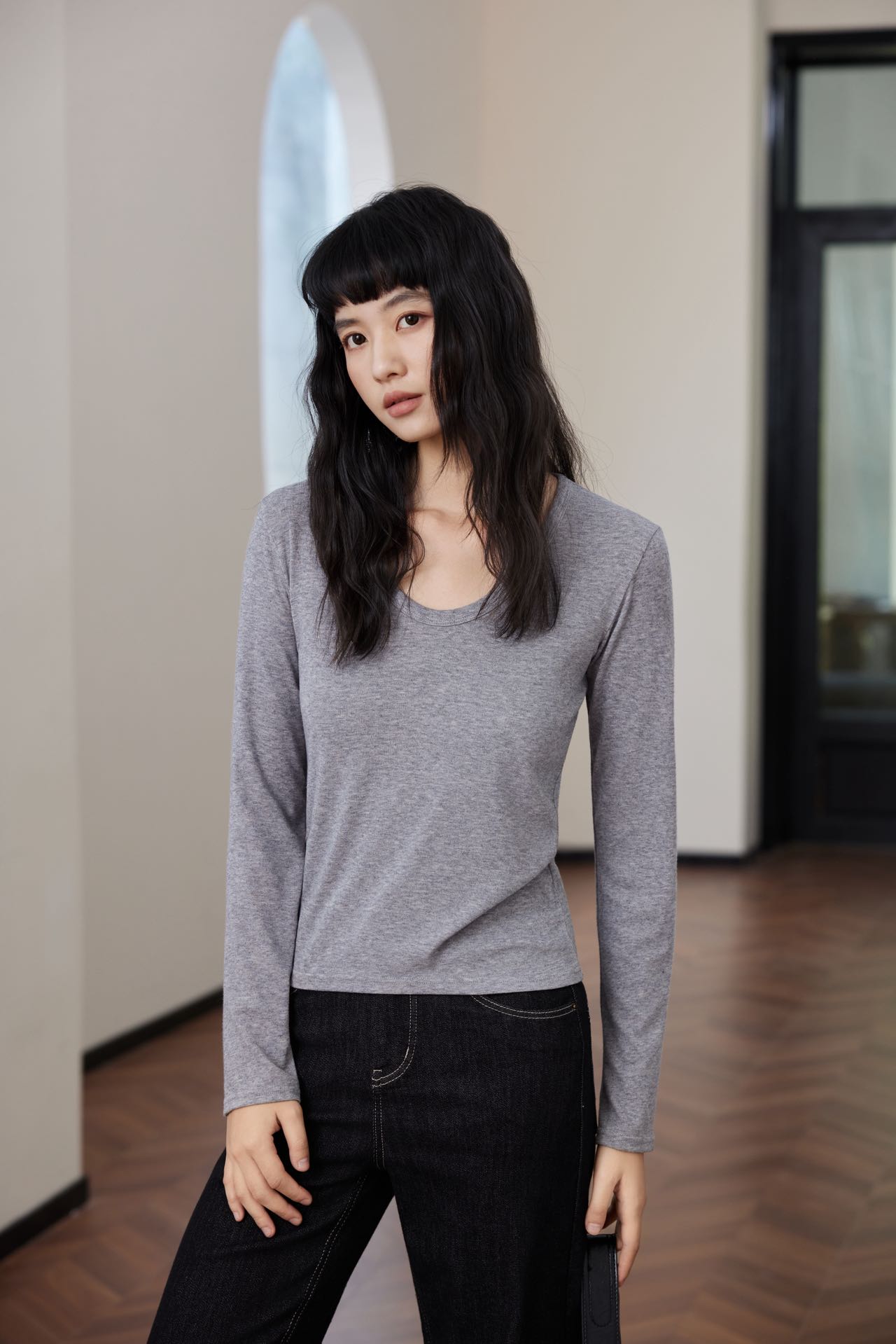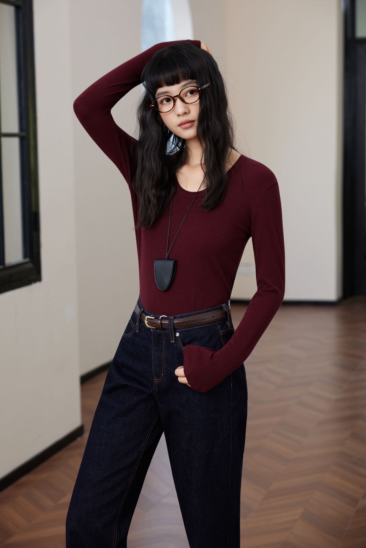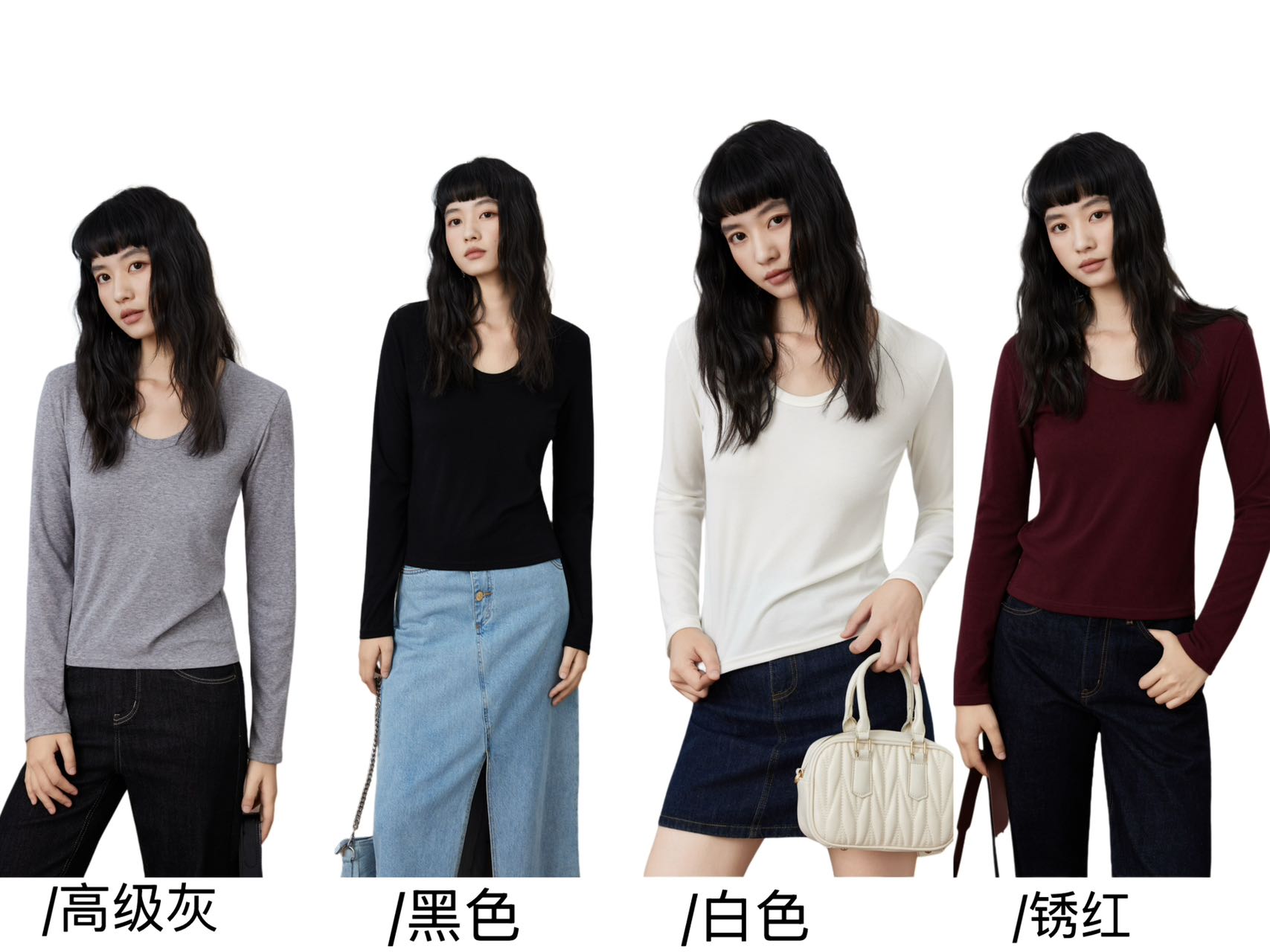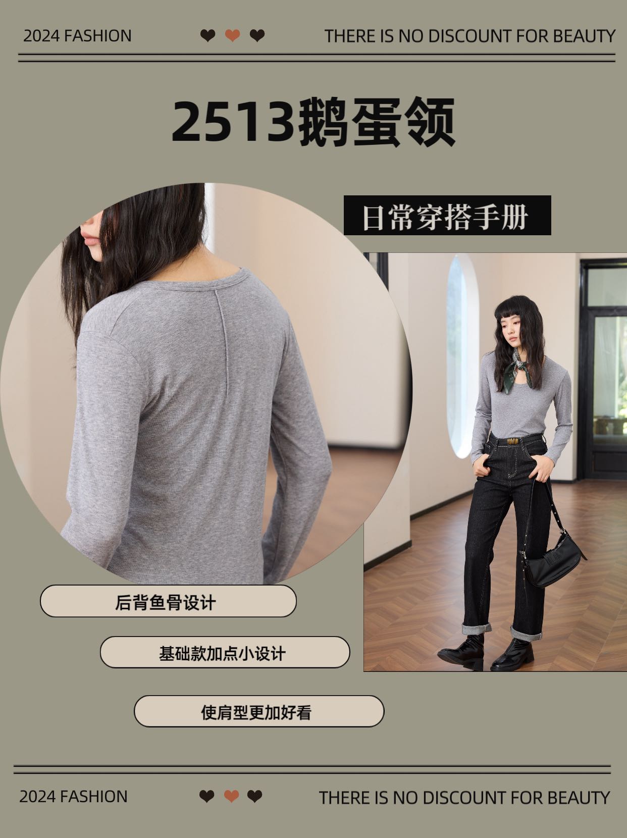 【超值两件装】卷卷紫鹅蛋领长袖T恤 鹅蛋领设计领口 显瘦有气质 面料软弹舒适 修身百搭单穿叠穿都有范
