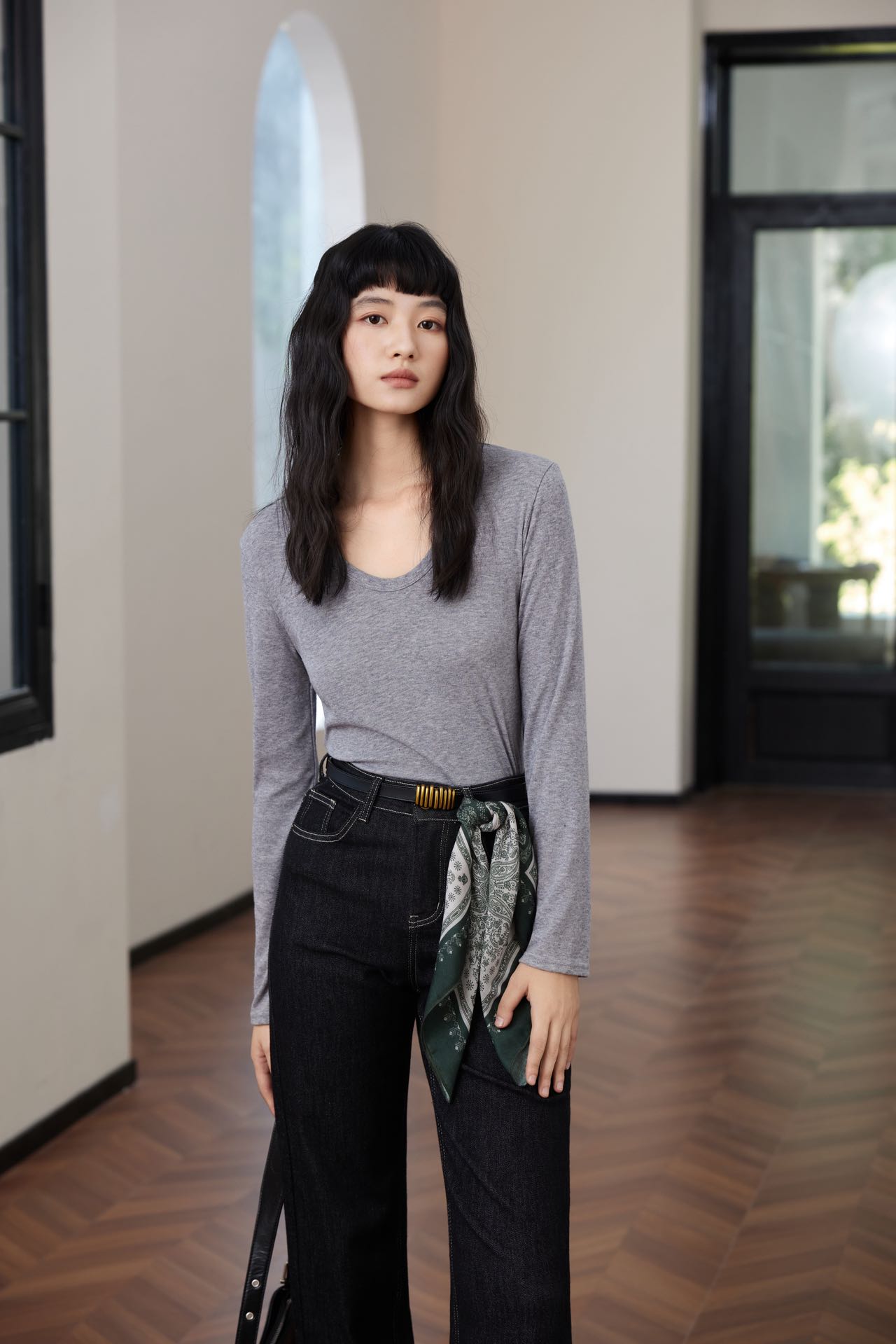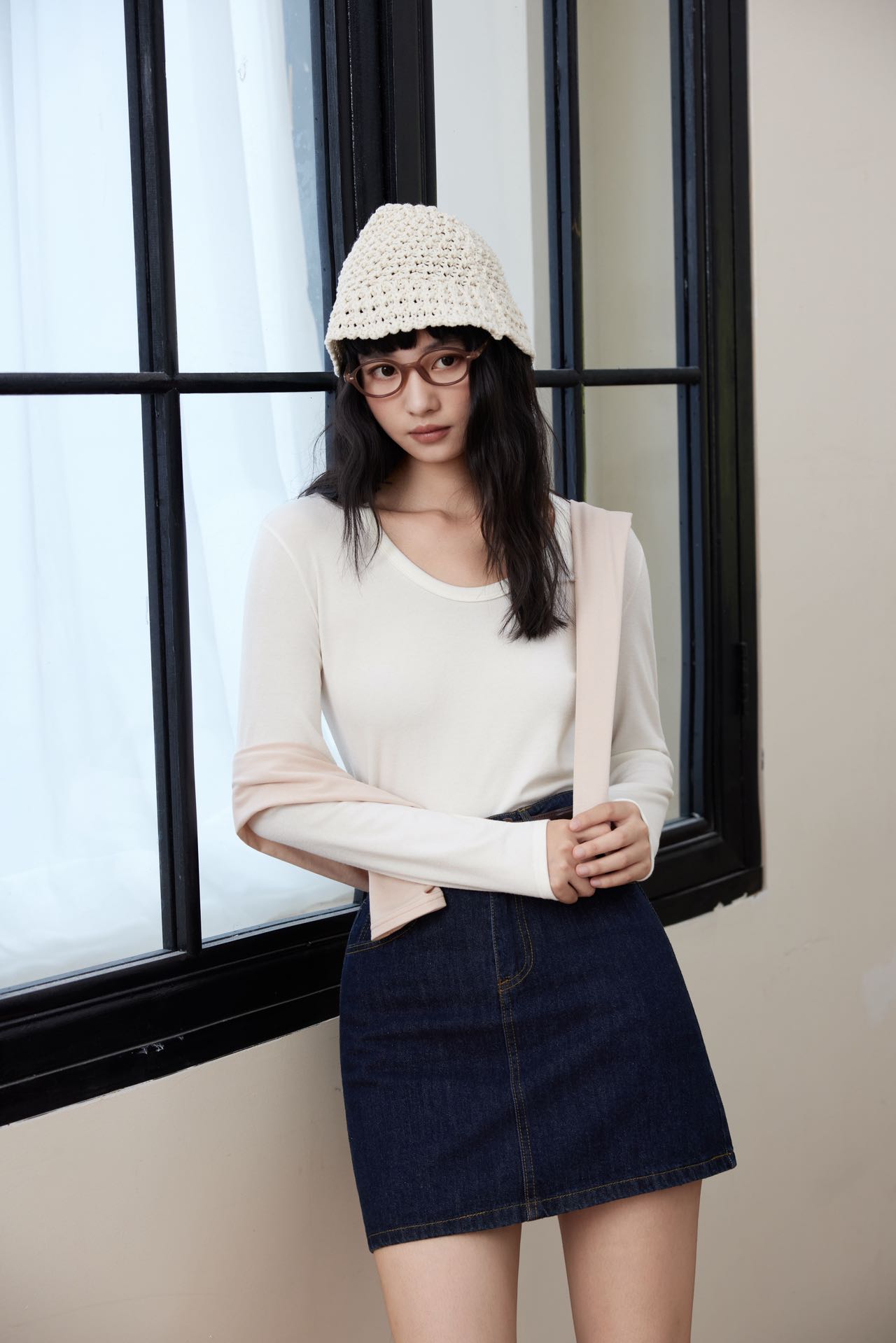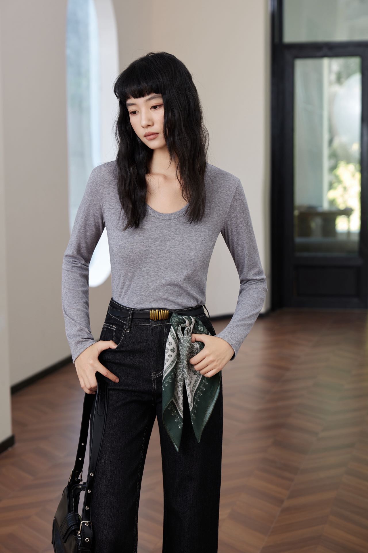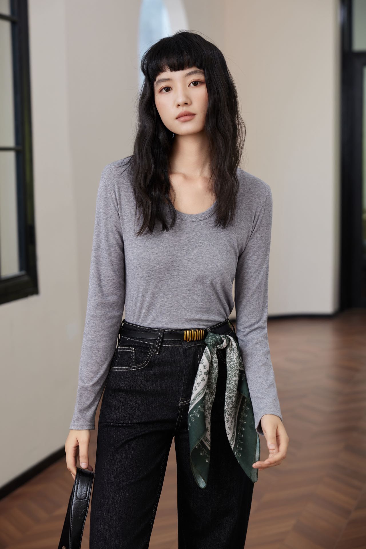 【超值两件装】卷卷紫鹅蛋领长袖T恤 鹅蛋领设计领口 显瘦有气质 面料软弹舒适 修身百搭单穿叠穿都有范