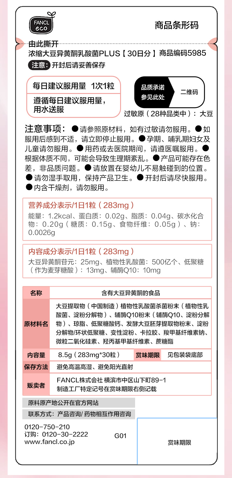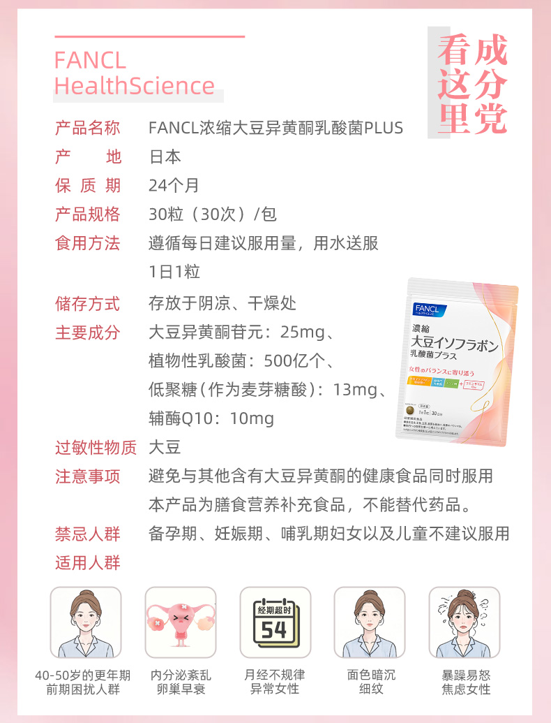 FANCL 大豆异黄酮 30粒/袋 A-3942(效期27-7)